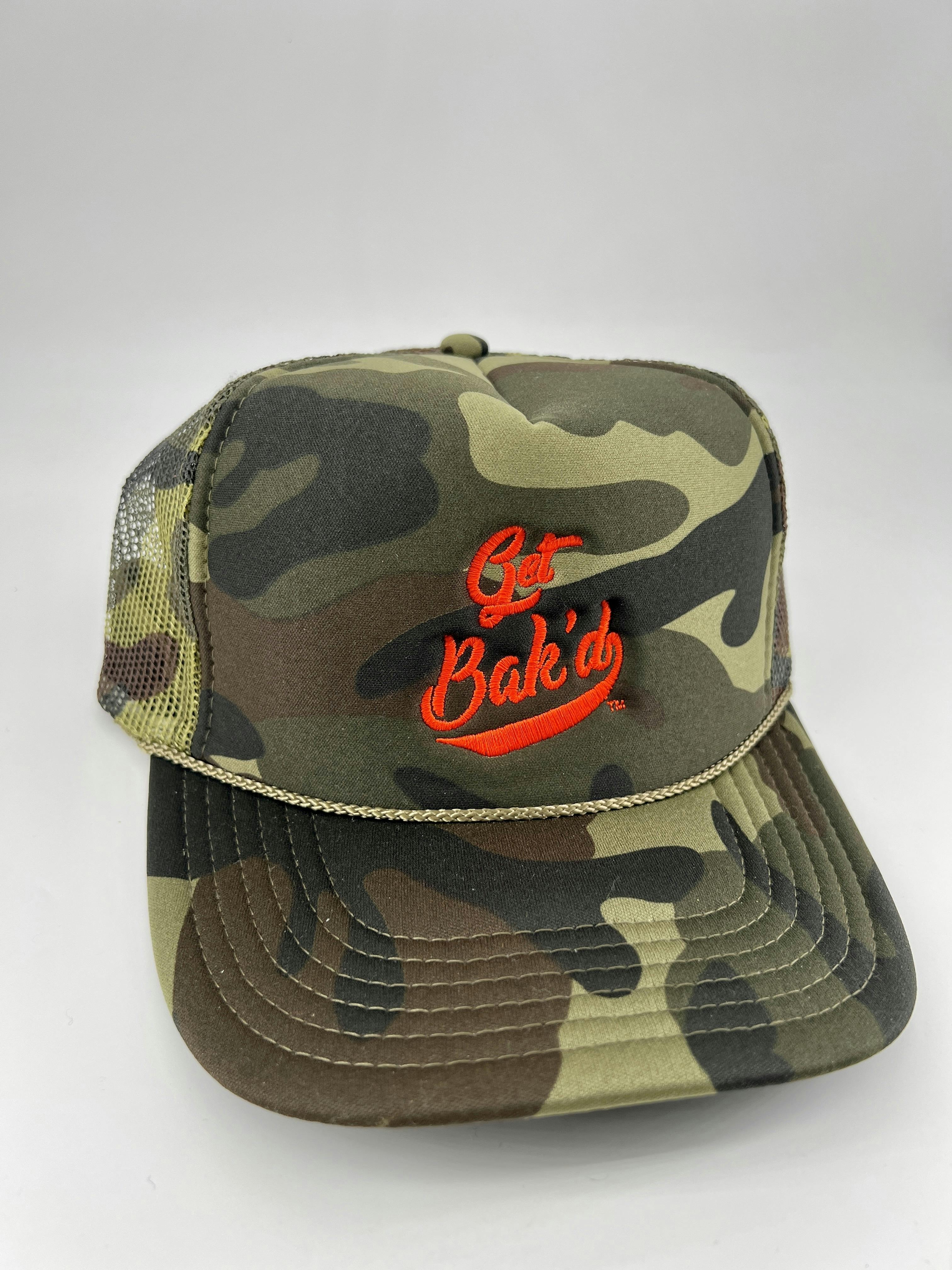 The Get Bak'd Classic Mesh Trucker hat is embroidered and equipped with a matching color braid, undervisor, and sweatband for maximum comfort & style.