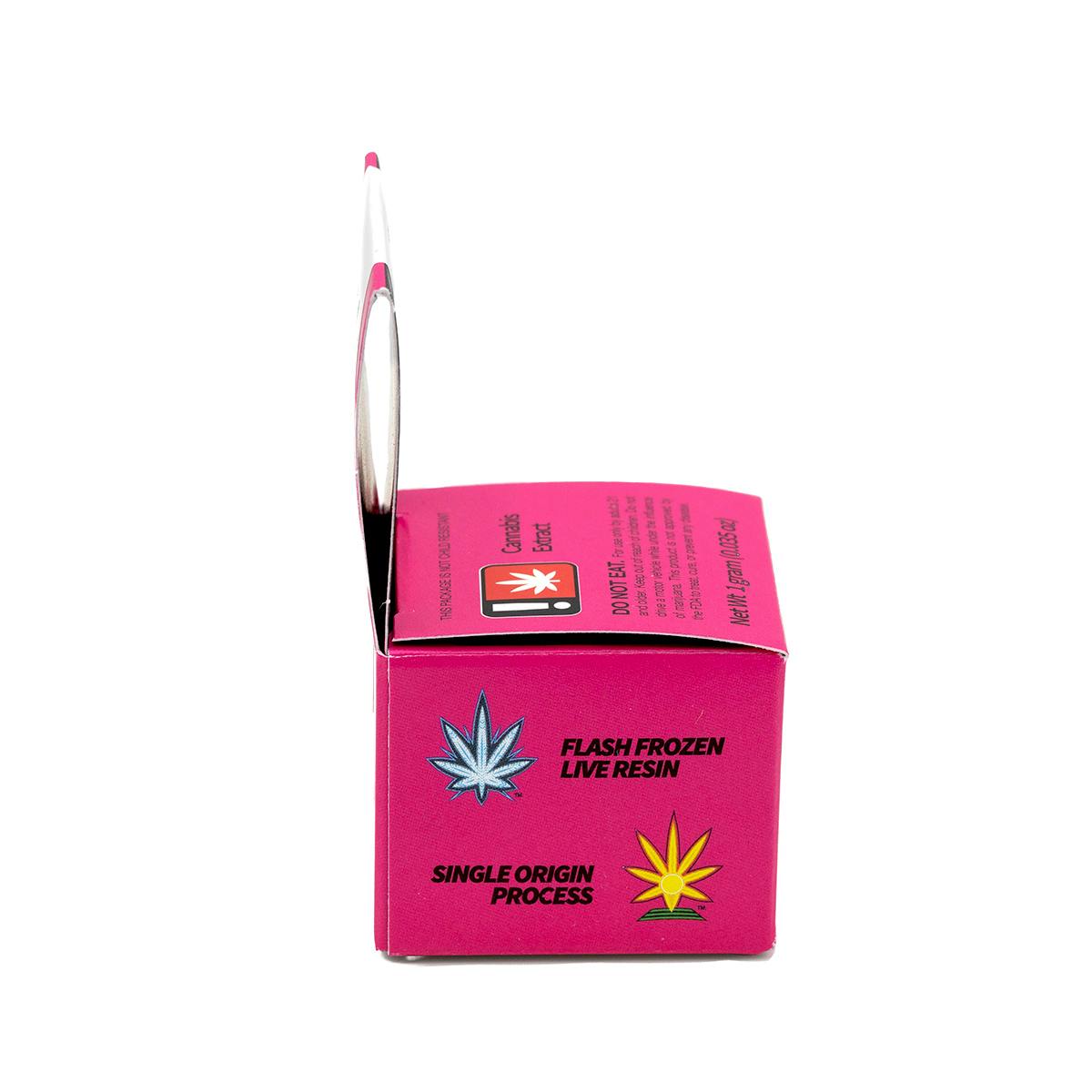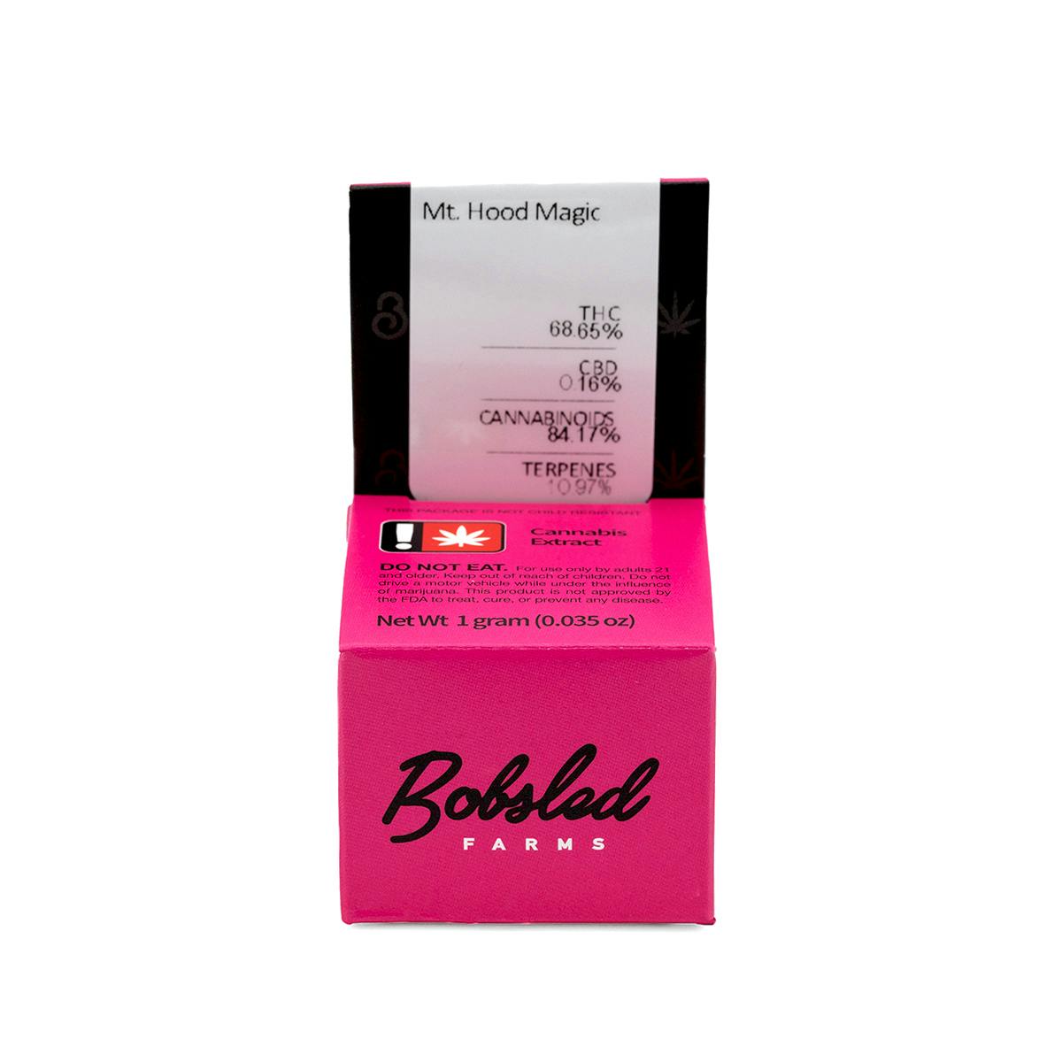 Our pink box contains single-sourced, flash-frozen live resin made from flower grown exclusively at Bobsled Farms. A cross of Northern Lights and Durban Poison, Mt. Hood Magic is a Portland original that will leave you uplifted and happy, with notes of berries and pine. At Bobsled, we strive to provide the highest-quality extracts available at a price everyone can afford!