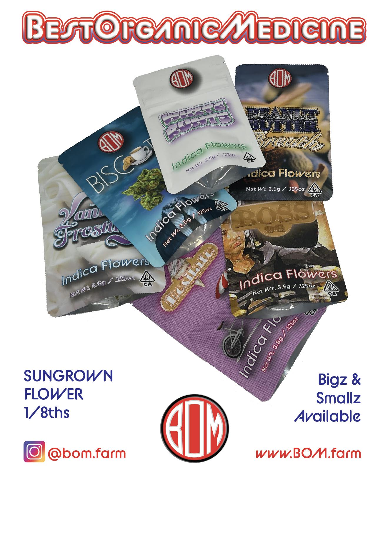 BOM is a California Cannabis Lifestyle Brand, founded by legacy cannabis cultivators and operators in the legal cannabis industry for over a decade. BOM represents cannabis as Nature's Best Organic Medicine. BOM cannabis products are of the highest quality in sun grown, light deprivation, indoor cultivation, extracts and vapes.