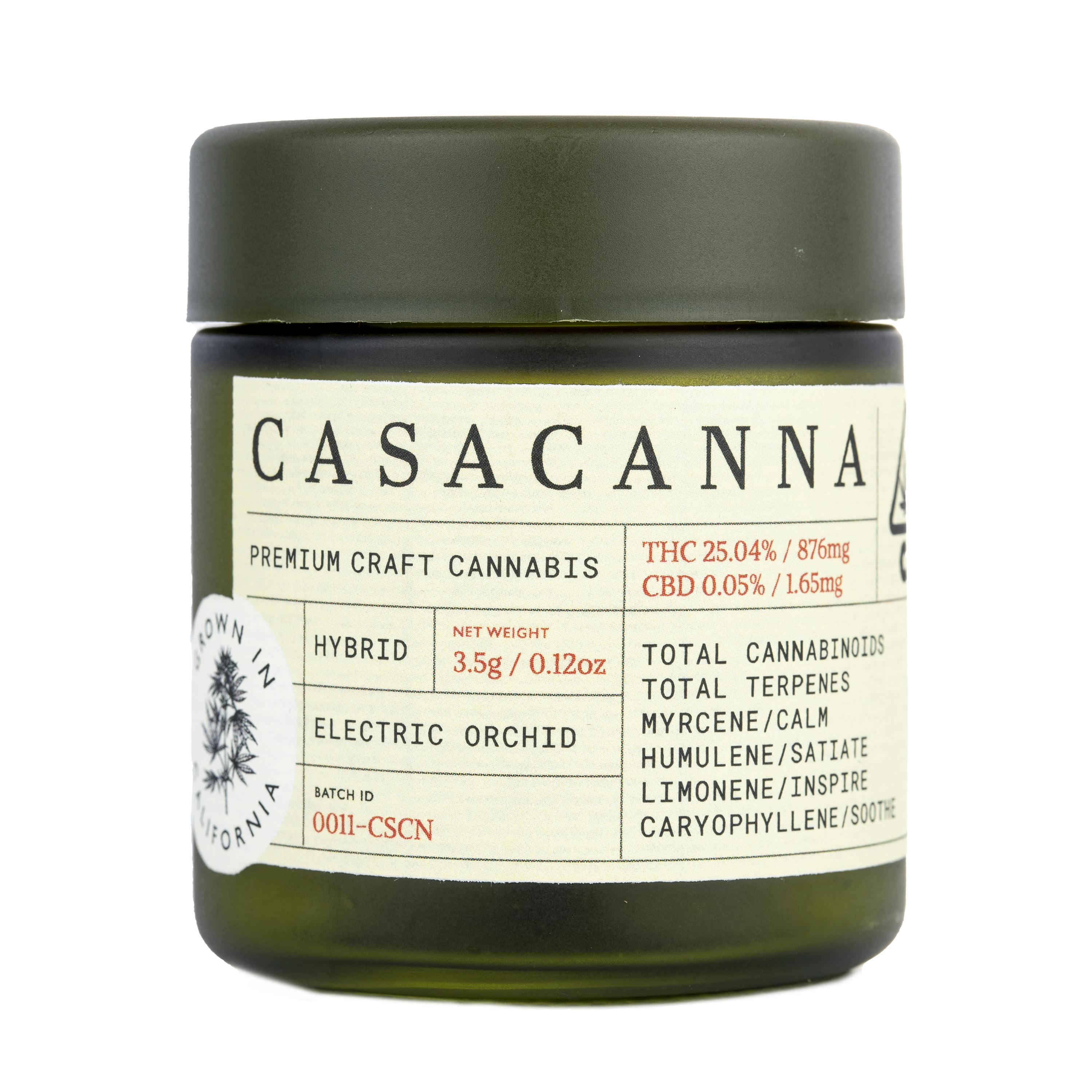Electric Orchid by Casacanna is a hybrid strain known for its pleasant herbal smell and relaxing effects. This strain has a complex aroma with notes of earthy musk and sweet citrus. The effects are expected to be relaxing and sedative, providing both a body buzz and a calming sensation to the mind. Electric Orchid is perfect for those looking for a chill night, with a complex aroma that is sure to please any cannabis enthusiast.