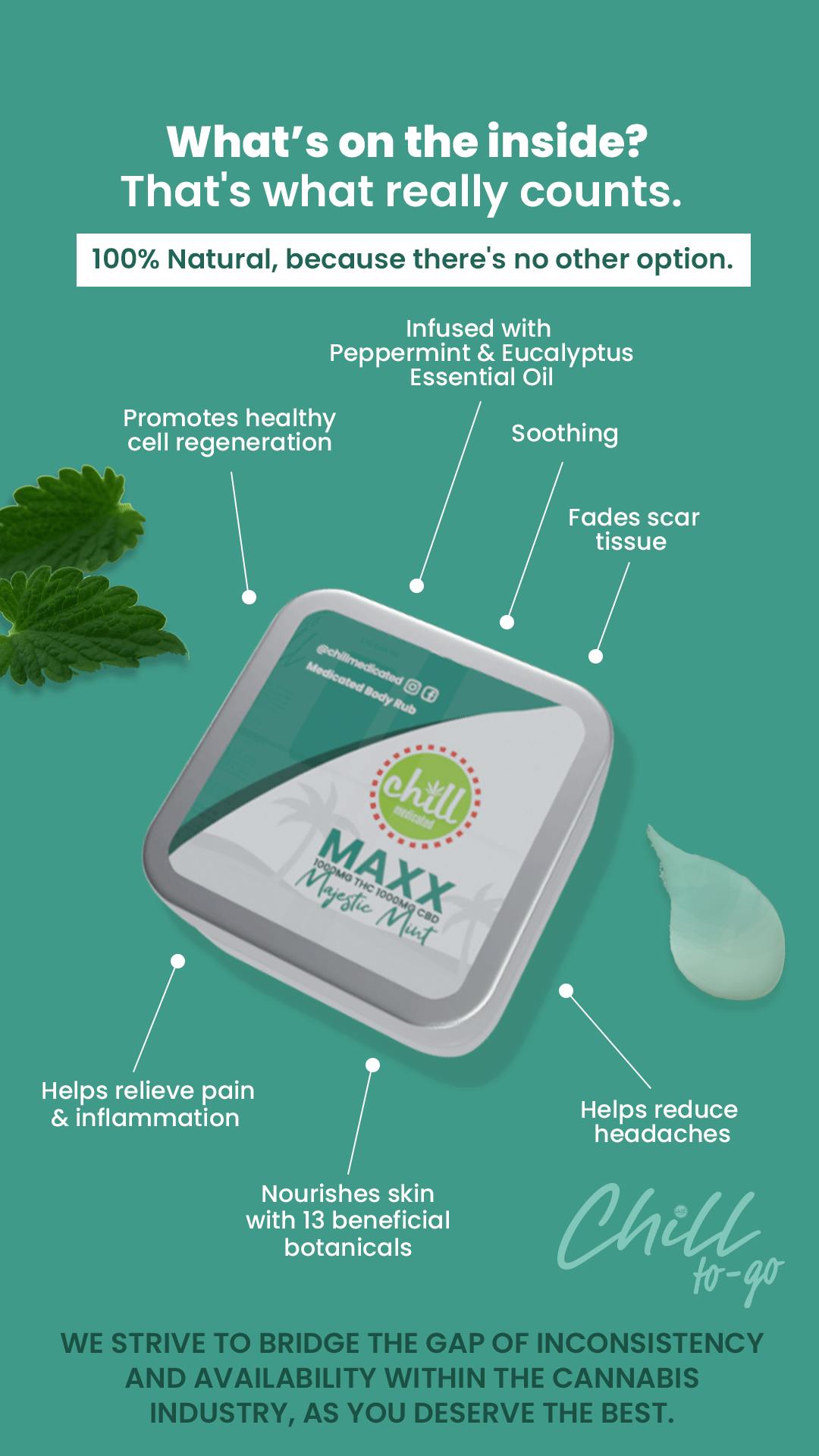 75mg THC : 75mg CBD | MAXX TO-GO Majestic Mint Body Rub | MED