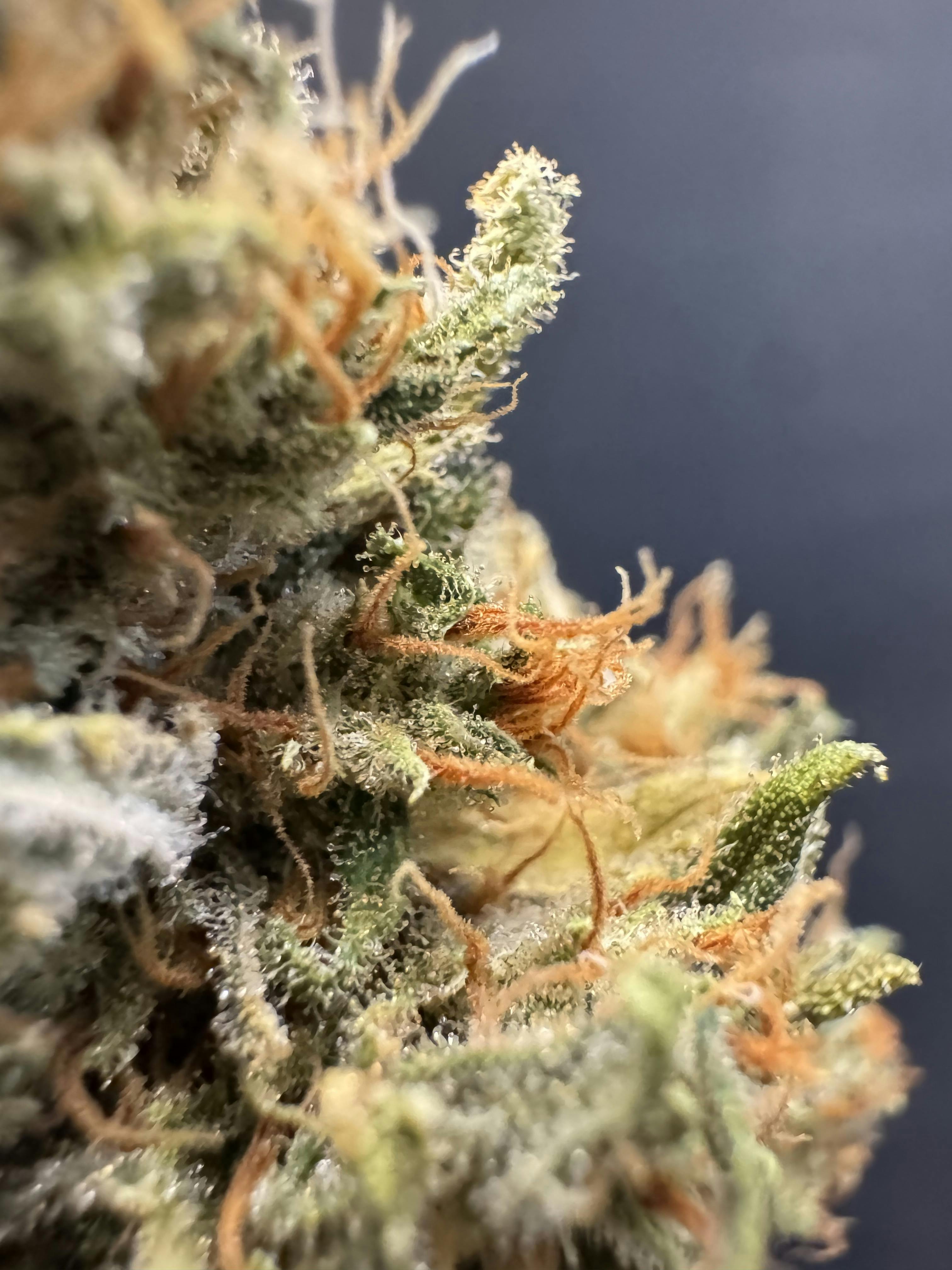 Appearance: Dumpster buds are typically light green and noted for their compact, dense, and resin-soaked structure. They are often covered in frosty trichomes and short, curly orange hairs.