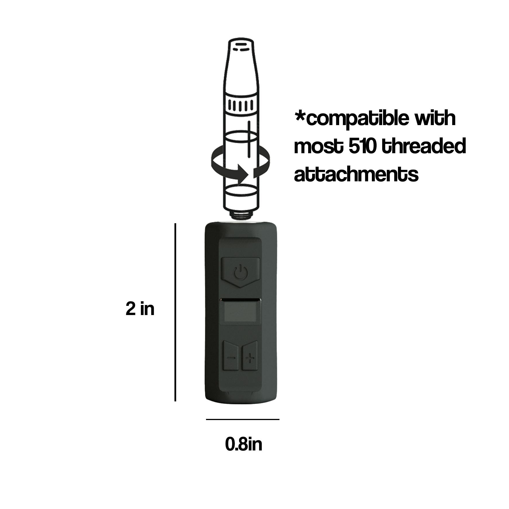 The brand new Mini Battery fits everything you love about Boost batteries into an even more compact device. Sturdy + precise hardware features a new digital screen for ease of use, more advanced user customization (1.8v-4.2v), and faster 10sec preheating function. Device is compatible with 510-threaded cartridges and USB-C universal charging cables.
