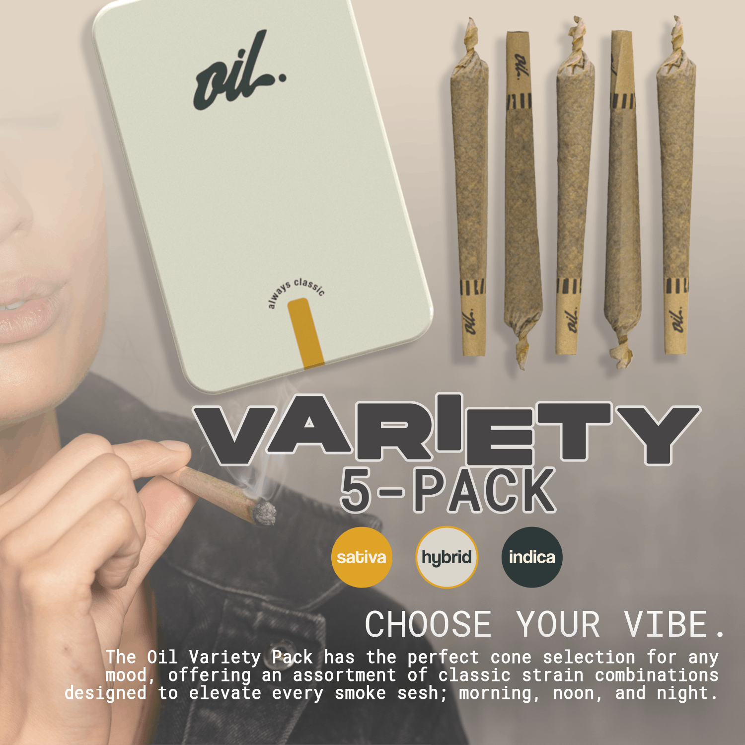 Each pack comes with a variety of Sativa, Hybrid, and Indica Cones; the ideal assortment to start your morning, boost your midday, and help you relax in the evening.