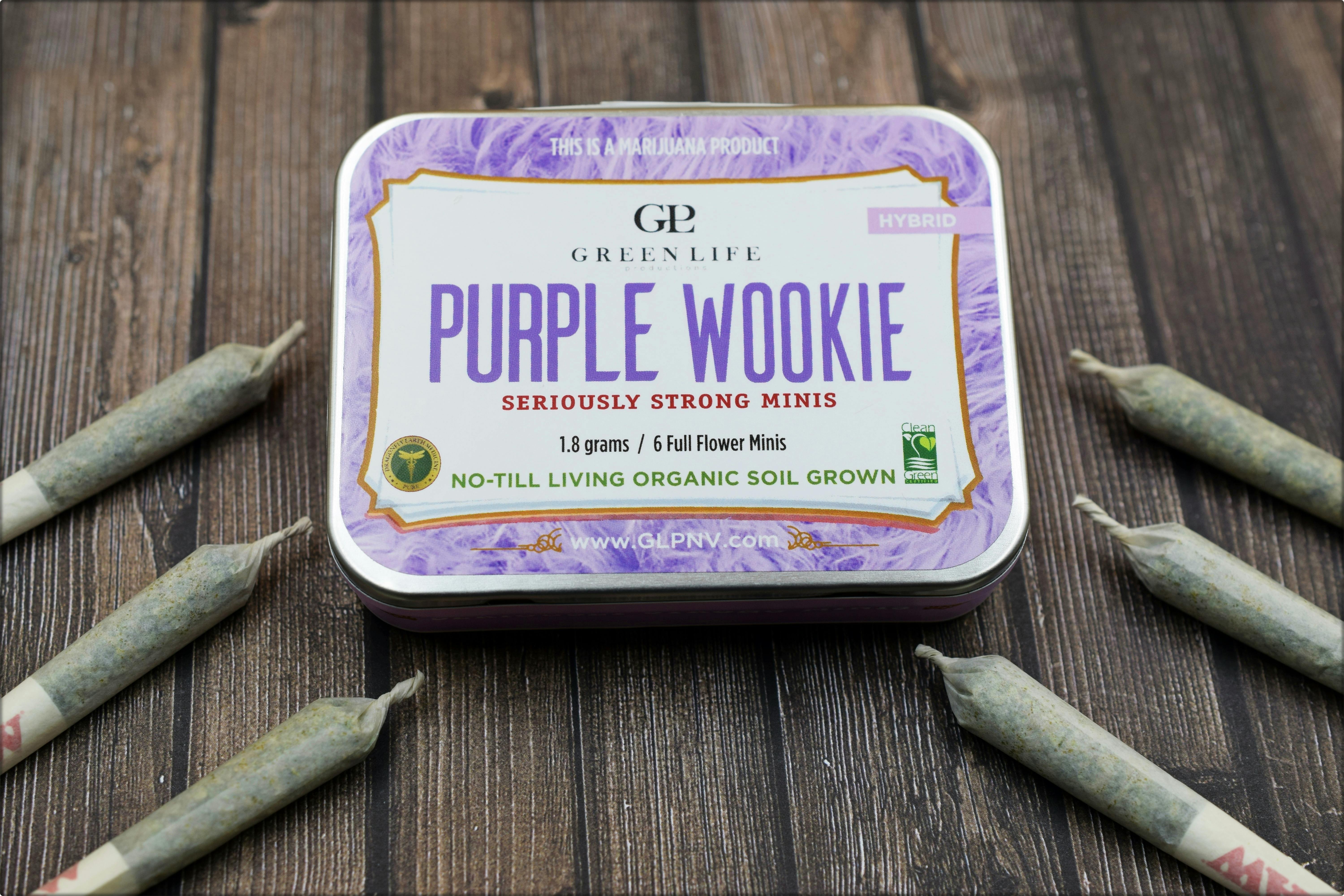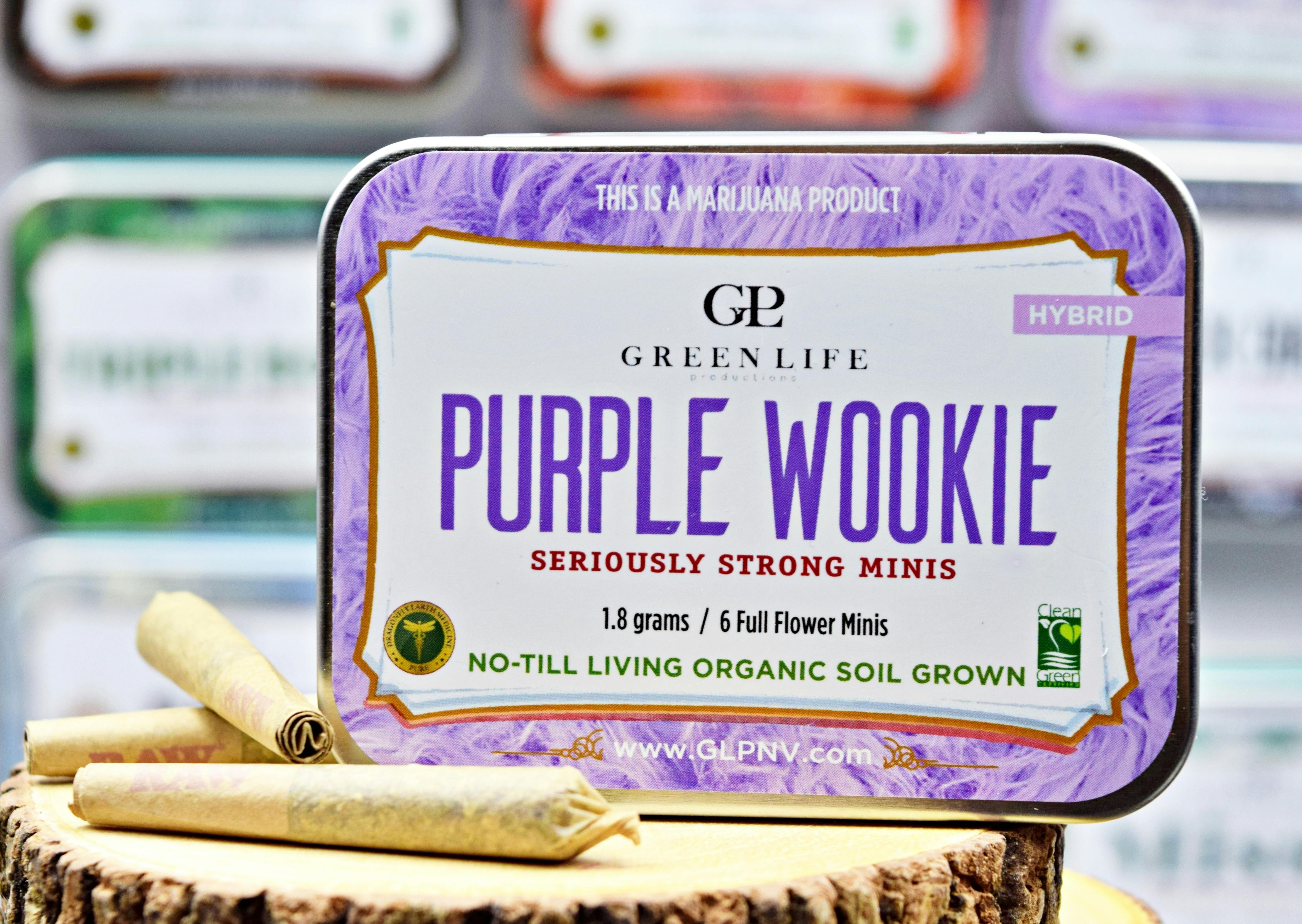 Green Life Productions is proud to offer Purple Wookie Baby J's. Each tin contains six (6) individual .3-gram miniature prerolls (baby j's). Perfectly suited for on-the-go discreet use.