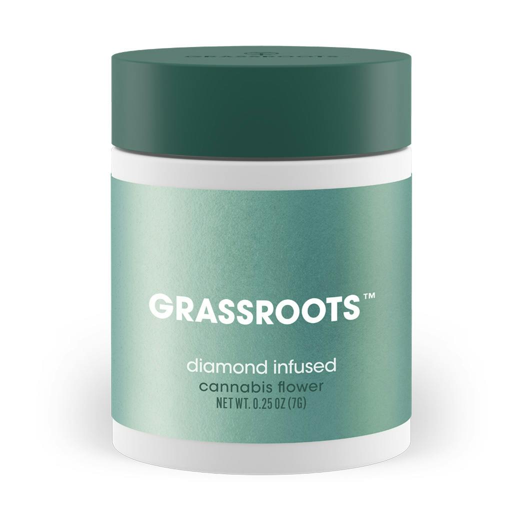 Clarity, rarity, and packed with an extra punch. These are the characteristics that define Diamond Infused Whole Flower by Grassroots. This premium flower is infused with a boost of power that is 10-15% stronger than your standard strain. Made with exceptional taste in mind, our Diamonds are clear, pure, and designed to let the true flower and terpene flavors shine. No shake, stems, or leaves, Diamond Infused Whole Flower are full nugs ready for joint rolling, bowls, bongs, or bubblers.