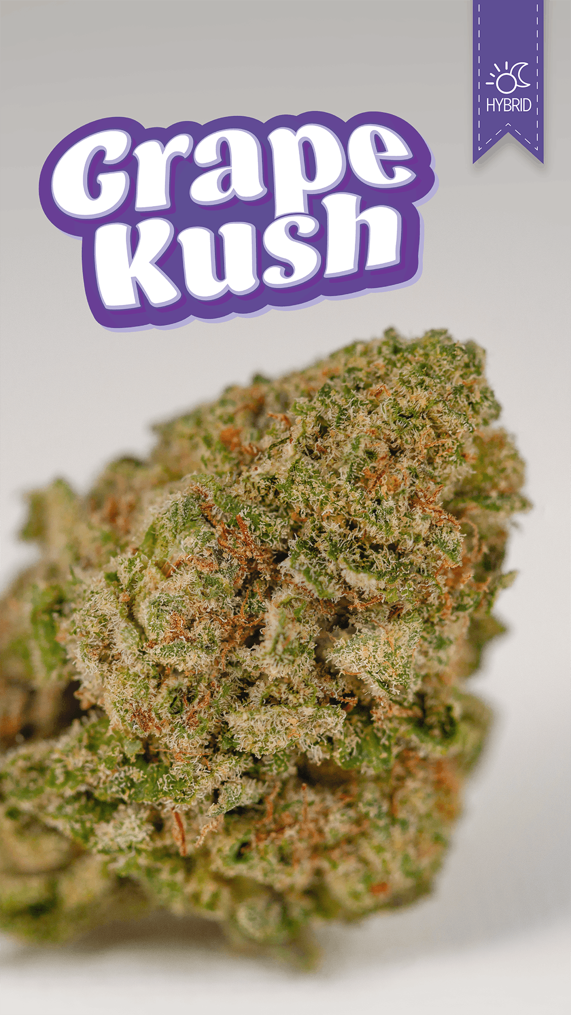 Grape Kush is reported to give off fruity, tangy, sweet aromas similar to sour grapes. It's considered a long-lasting, sedating indica, meaning it's great for nighttime and falling asleep. Given it's reported potency of around 13-30% and long-lasting effects, it's suggested to start out with small doses.