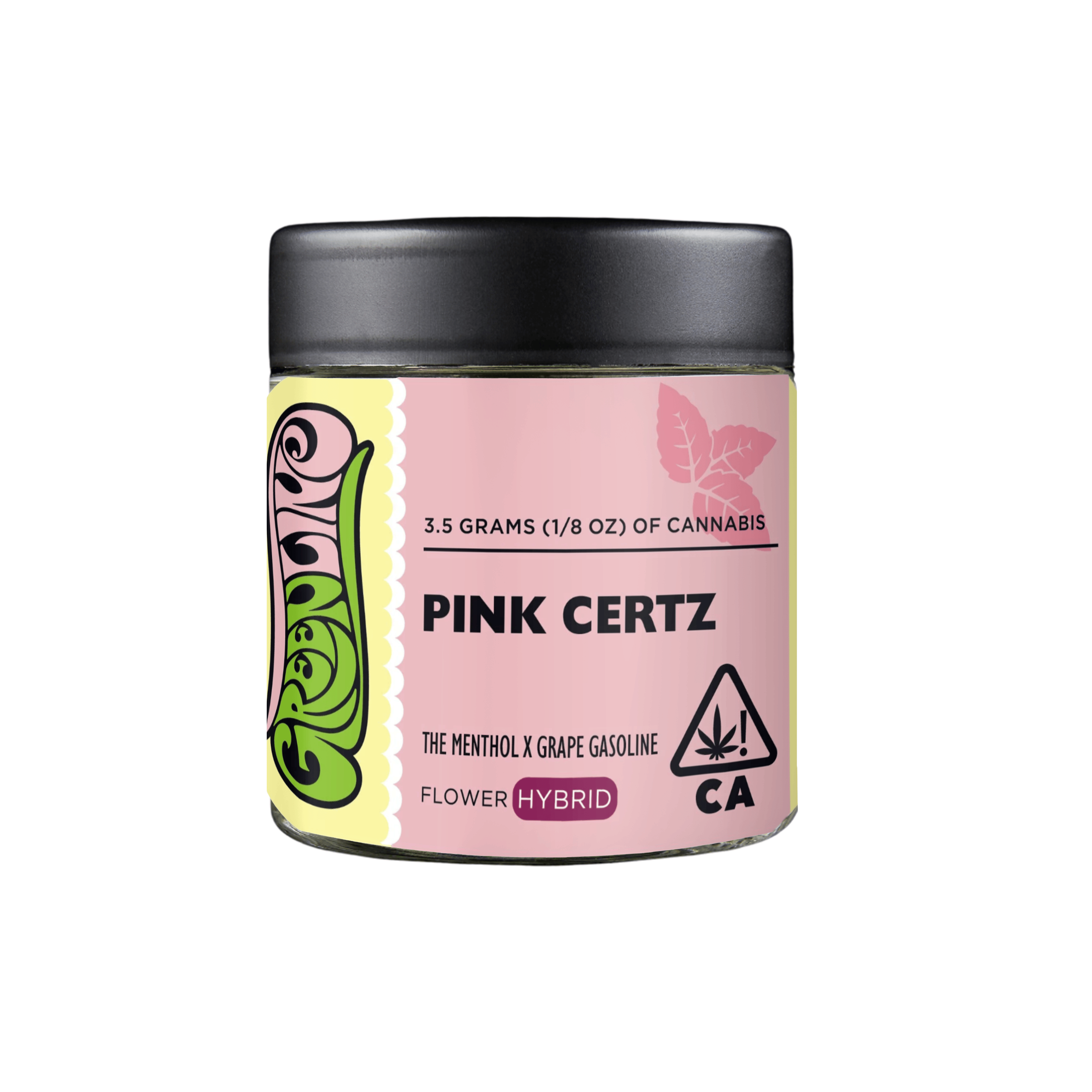 Pink Certz is a hybrid strain combining The Menthol x Grape Gasoline for a striking blend of mint, grape, and fuel aromas. This award-winning cultivar took the top spot at the Transbay Challenge in 2022, proving its standout quality.