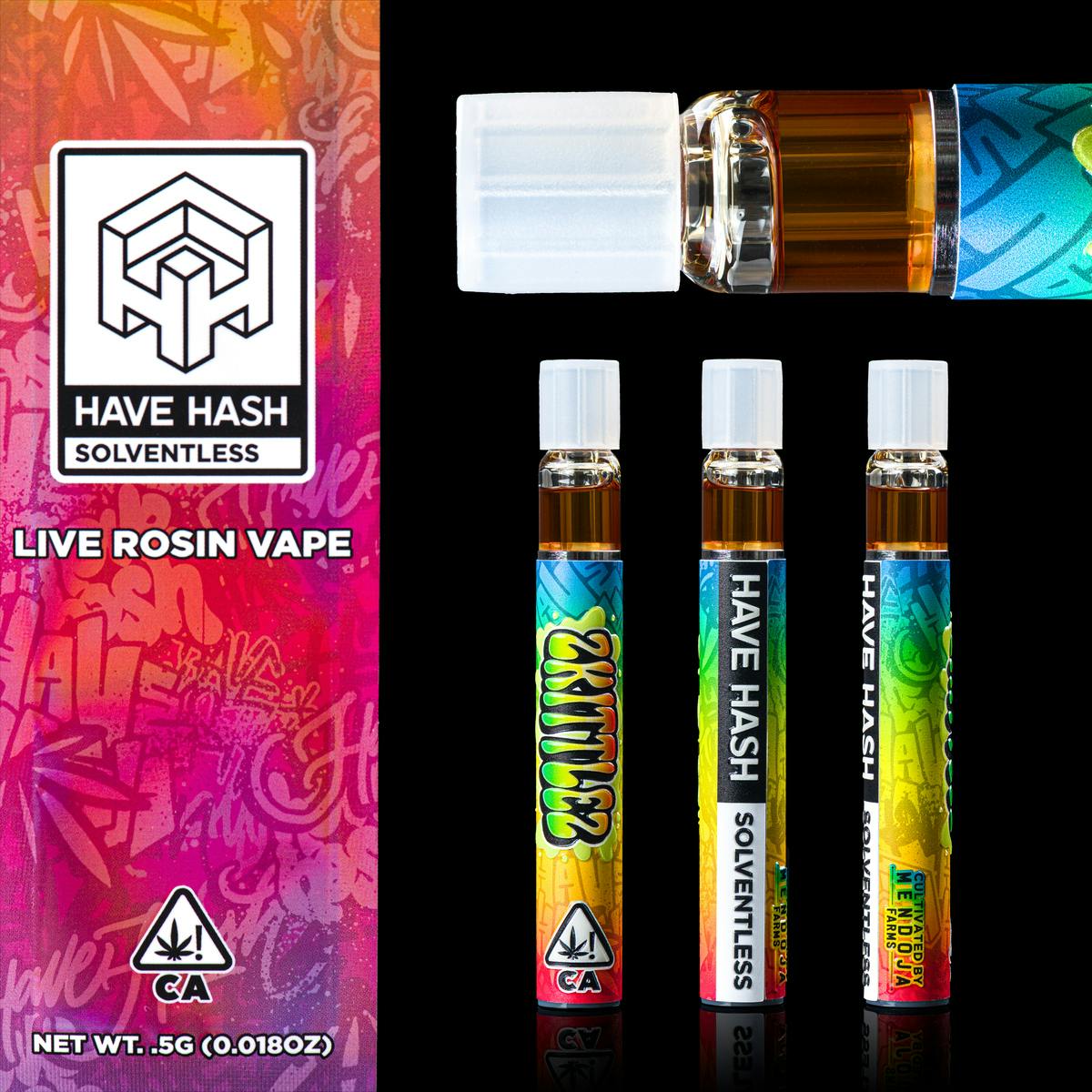 A premium solventless expression of Mendoza Farms’ renowned Zkittlez. Bursting with layered tropical fruit and candy-sweet aromatics, this all-in-one delivers a smooth, terp-rich finish—crafted with Have Hash’s signature purity and precision