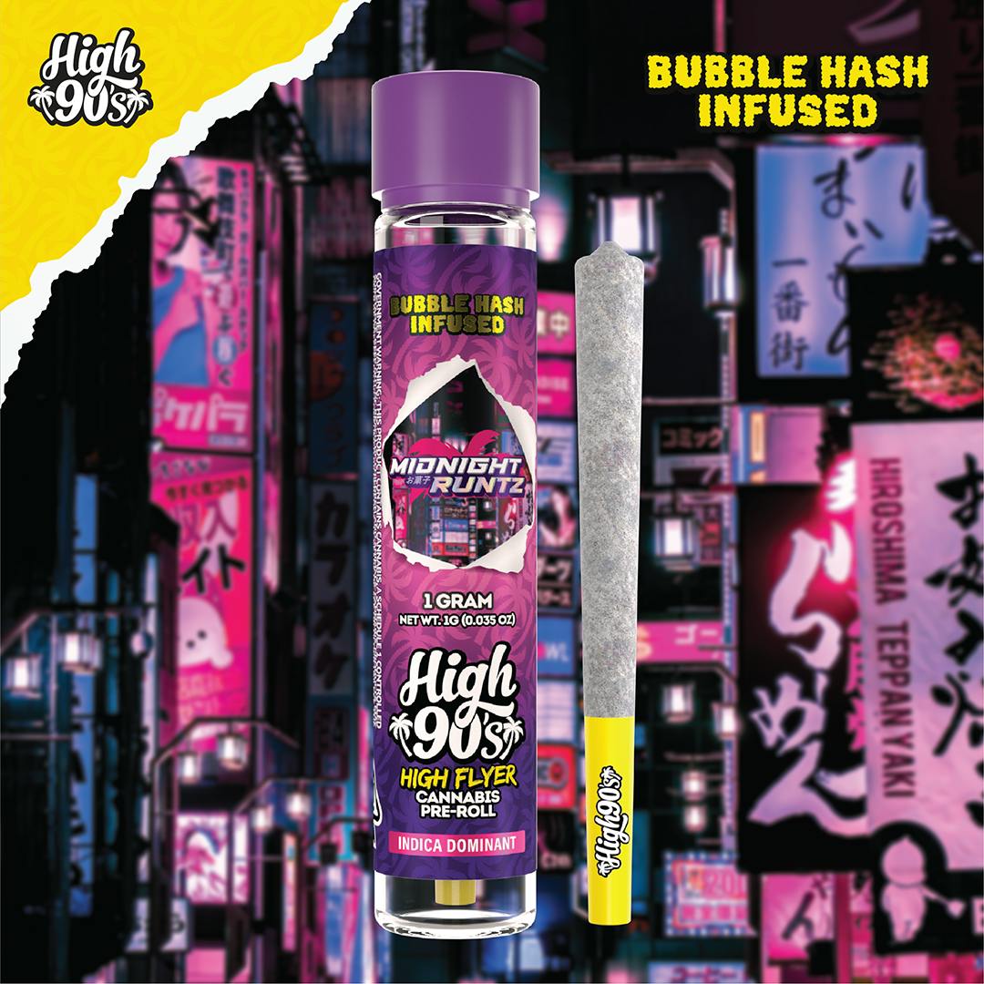 High 90s : Midnight Runtz 1g High Flyer Bubble Hash Infused Pre-Roll