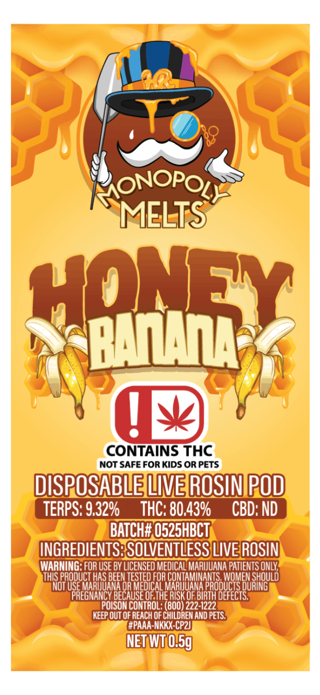 Honey Banana 0.5g Disposable Rosin Pod | High Rise x Monopoly Melts
