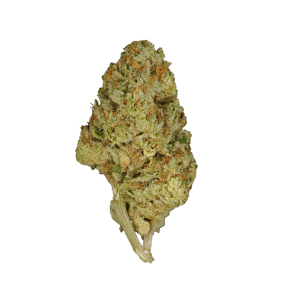 Manzana Verde (Green Apple) is a rare cross between the popular NorCal strains Apple Fritter and Runtz. Energizing and refreshing, this crisp sativa is sweet and tart with an overtone of spice that’s ideal for a morning or midday. Orange hairs surround this bright green flower’s trichome-frosted nugs and its effects are uplifting and focused.