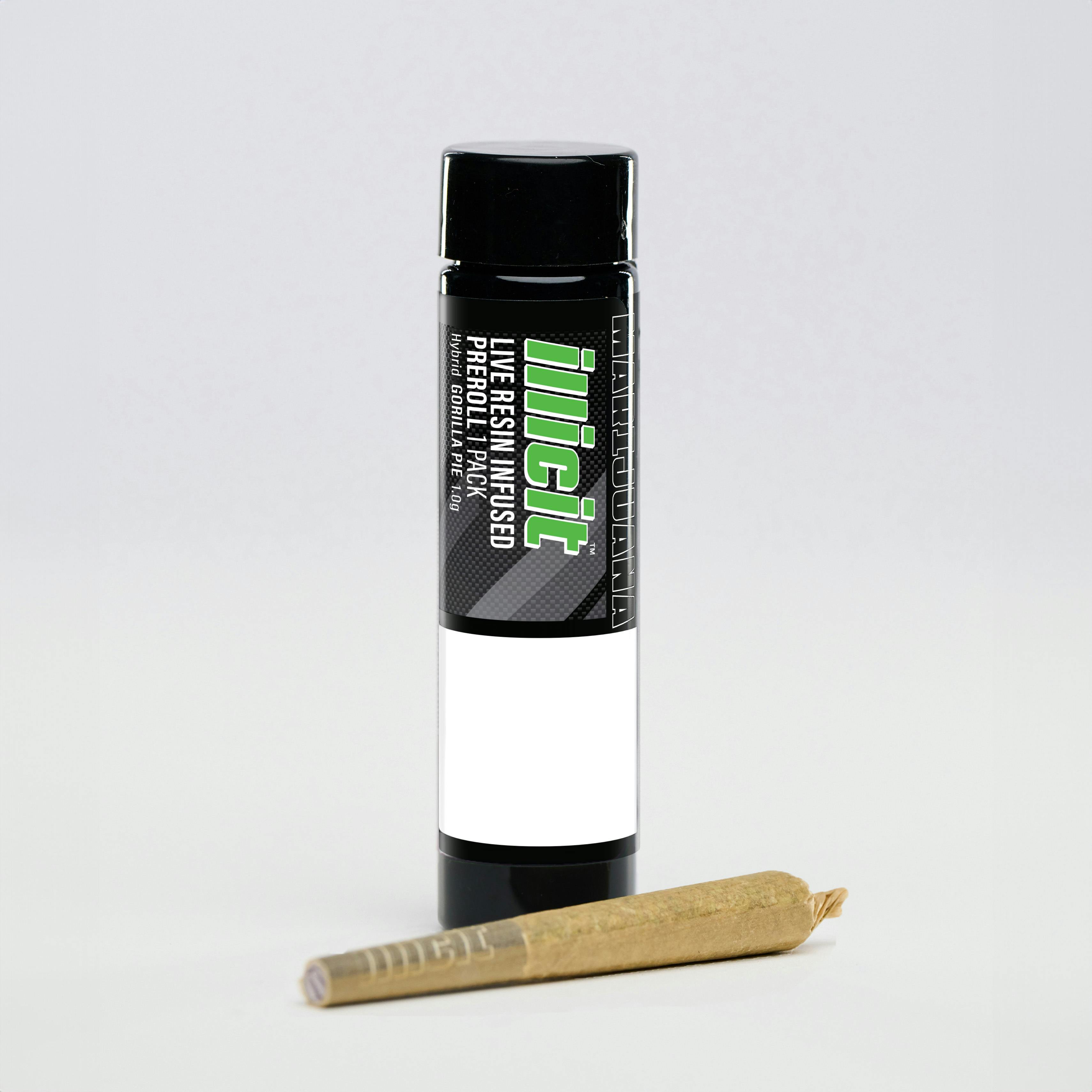 The Product: Illicit’s Gorilla Pie Live Resin Infused Prerolls take this celebrated hybrid and amplify its richness, flavor, and power. Each preroll is crafted with premium flower infused with Illicit’s signature live resin oil, boosting potency and depth while extending the burn for a slower, more even session. The addition of live resin enhances the natural terpene expression, allowing the full-bodied sweetness and pungent undertones of Gorilla Pie to shine through with remarkable clarity.