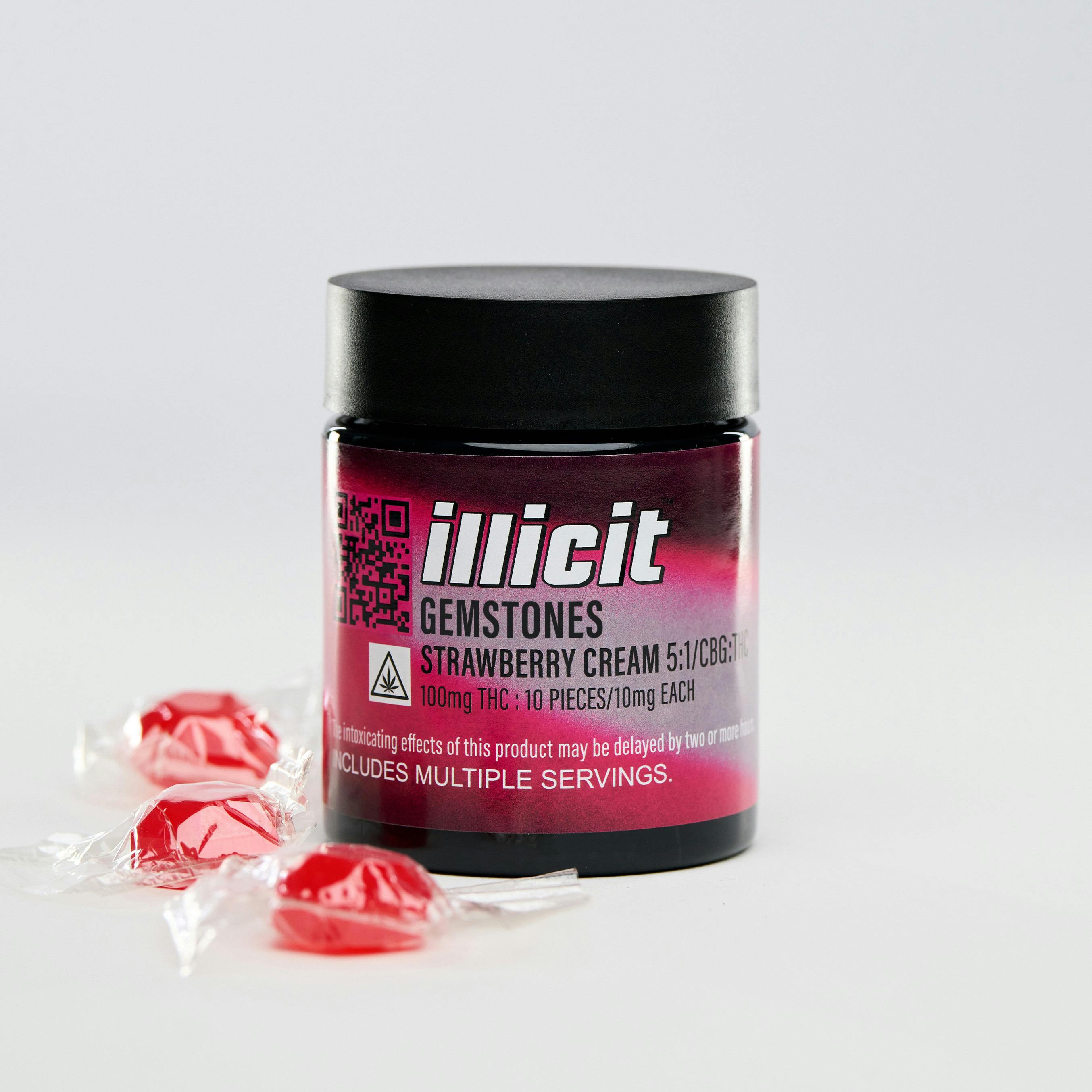 Illicit’s Strawberry Cream Gemstones invite you to embark on a jeweled journey of sweet and creamy indulgence. These cannabis-infused candies perfectly blend the luscious taste of ripe strawberries with a smooth, velvety cream, creating a harmonious symphony of flavors that enchant your palate with every bite. Each jar contains 10 expertly crafted candies, ensuring a consistent and delectable experience that transforms every moment into a delightful treat.