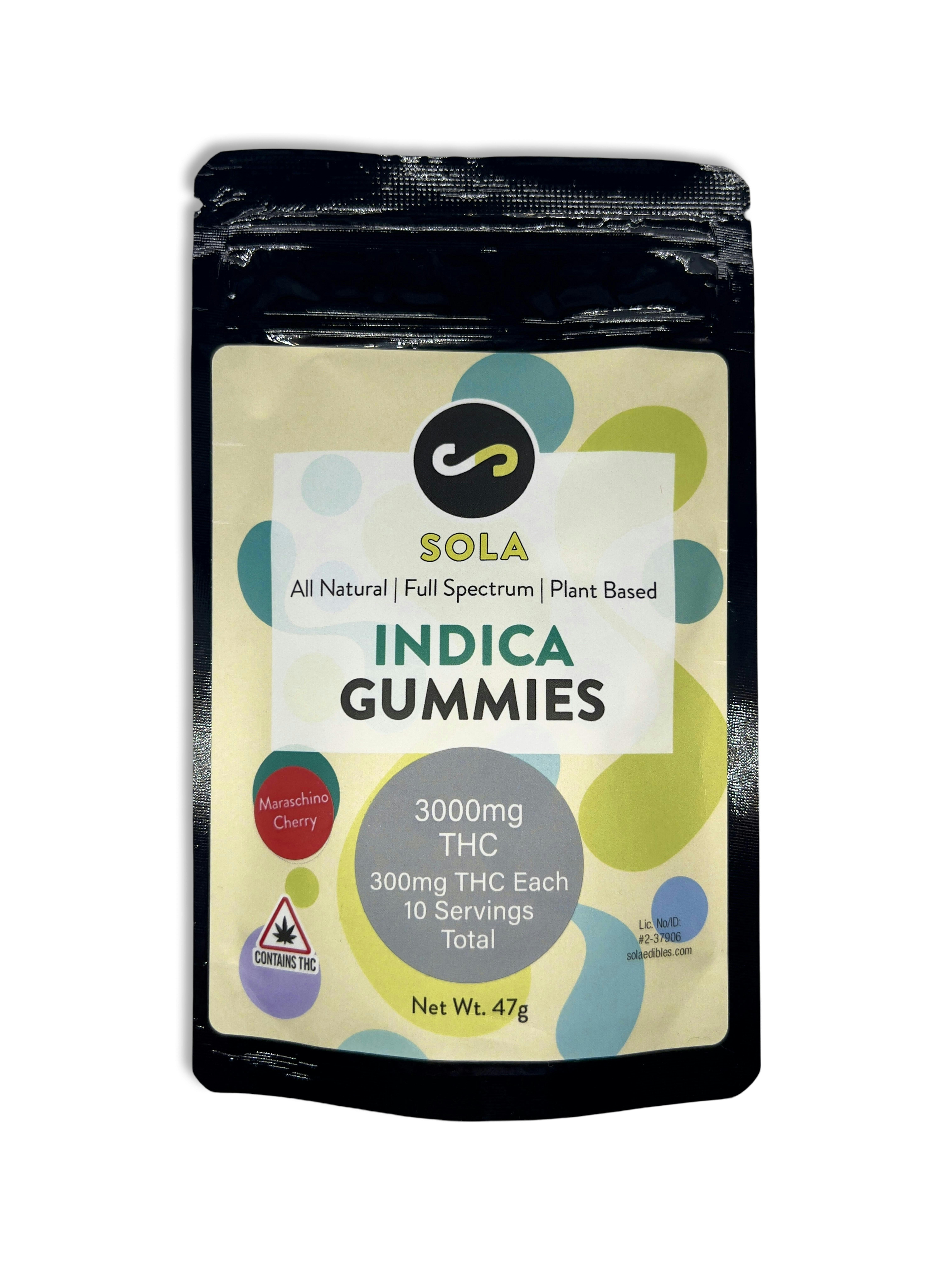 3000mg Indica Gummies - Maraschino Cherry Flavor (Sola Edibles)