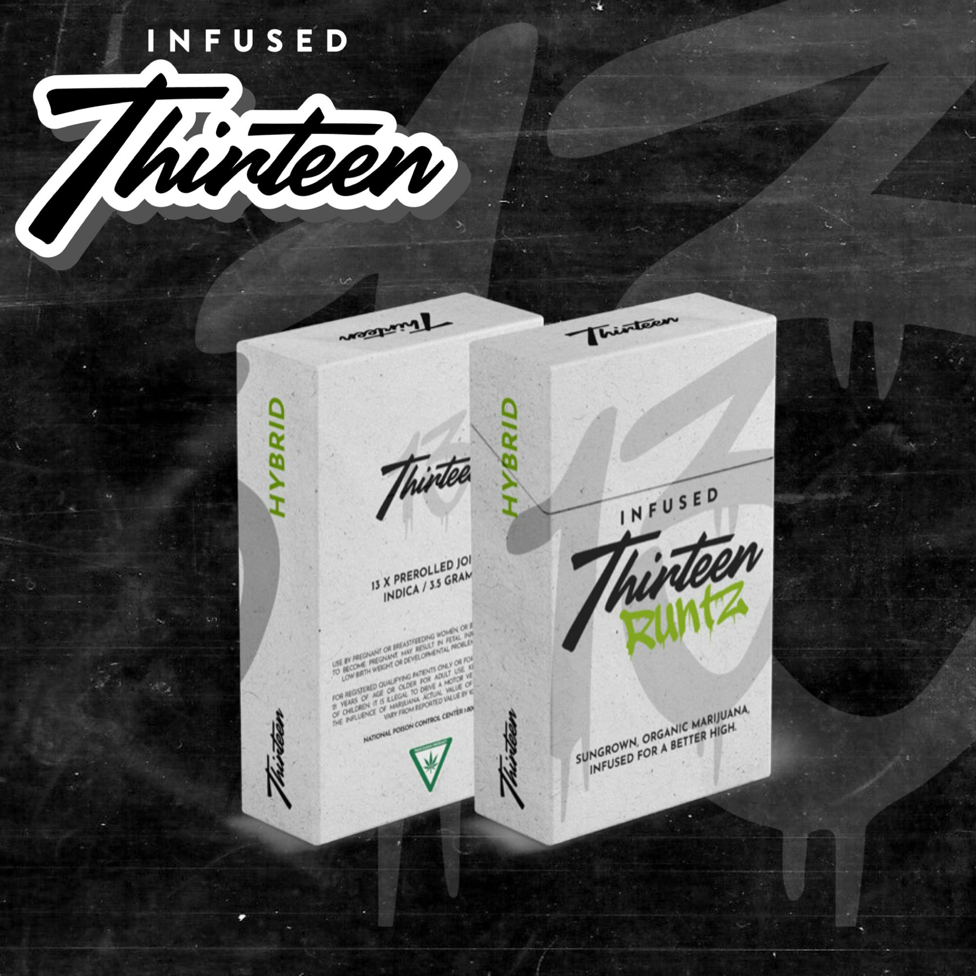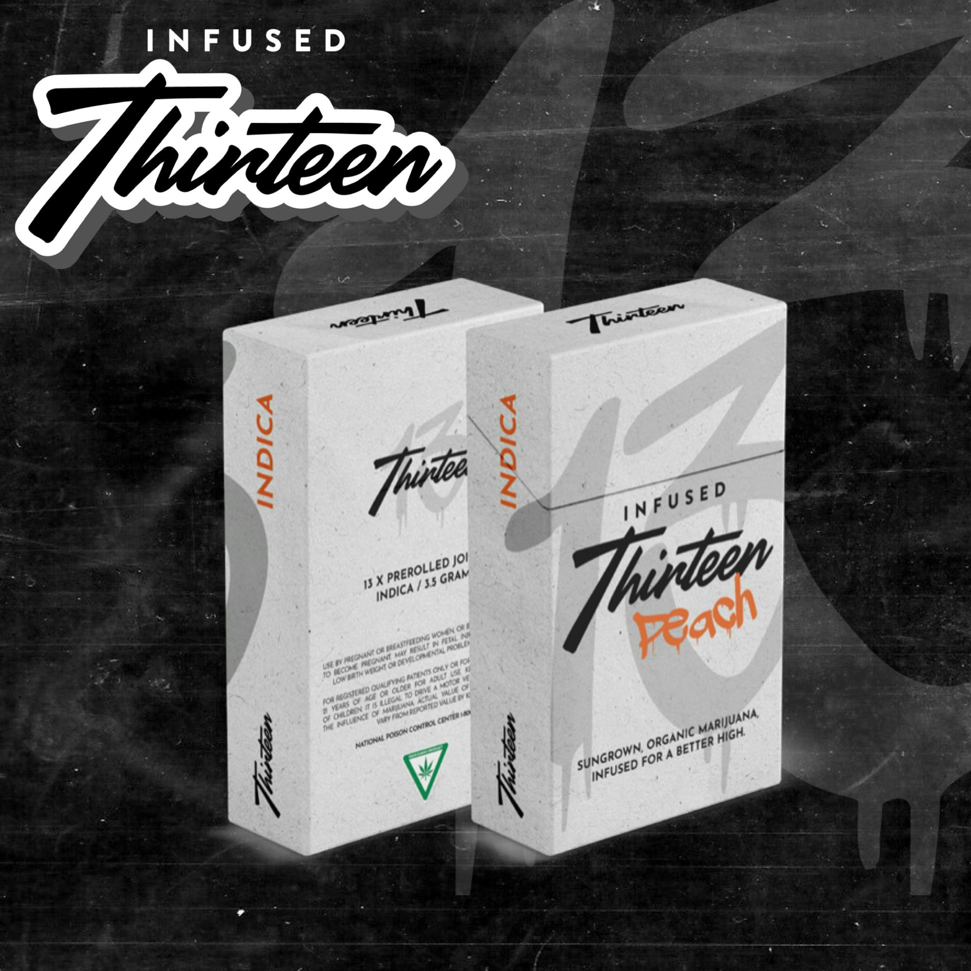 Welcome to the Official Brand Page for Infused Thirteen - Indulgence in conveince without sacrificing quality. Sungrown flower infused and rolled for your ease and high. Get the premium experience today in an infused 1G single pre-roll or an carton of 13 1G pre-rolls.