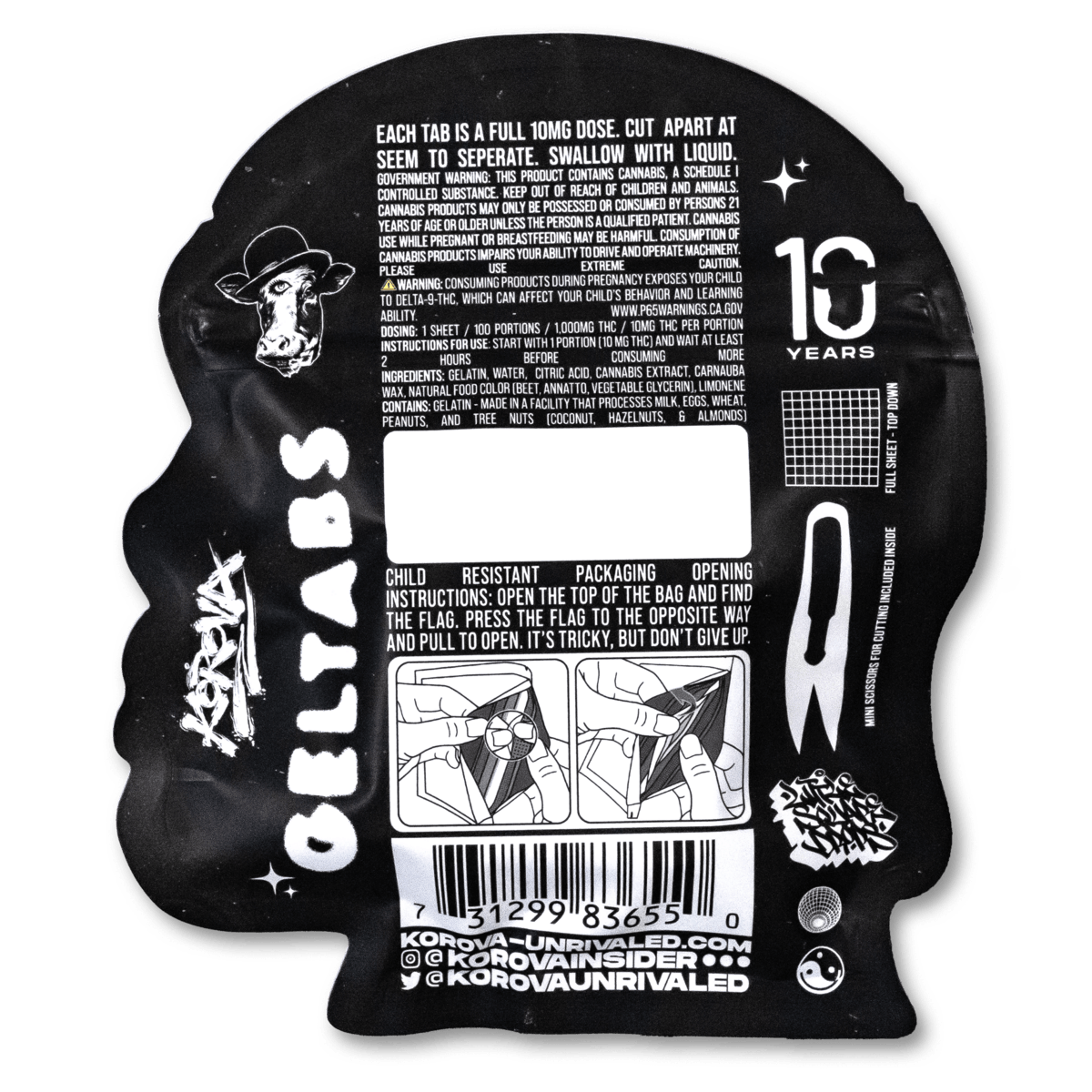 A small sheet of gel tablets abot 2 inches by 2 inches with 100 connected yet individual pieces. Lightly flavored with citrus terpenes and containing a full 1,000mg of THC. Each individual square is 10mg THC. Extremely potent!