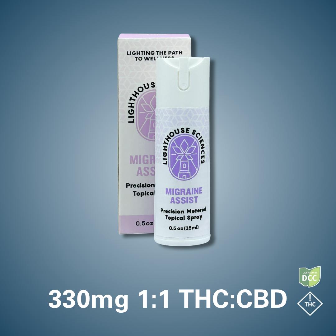 Lighthouse Sci | Migraine Assist Topical Spray | THC:CBD 300mg:300mg | 15mL