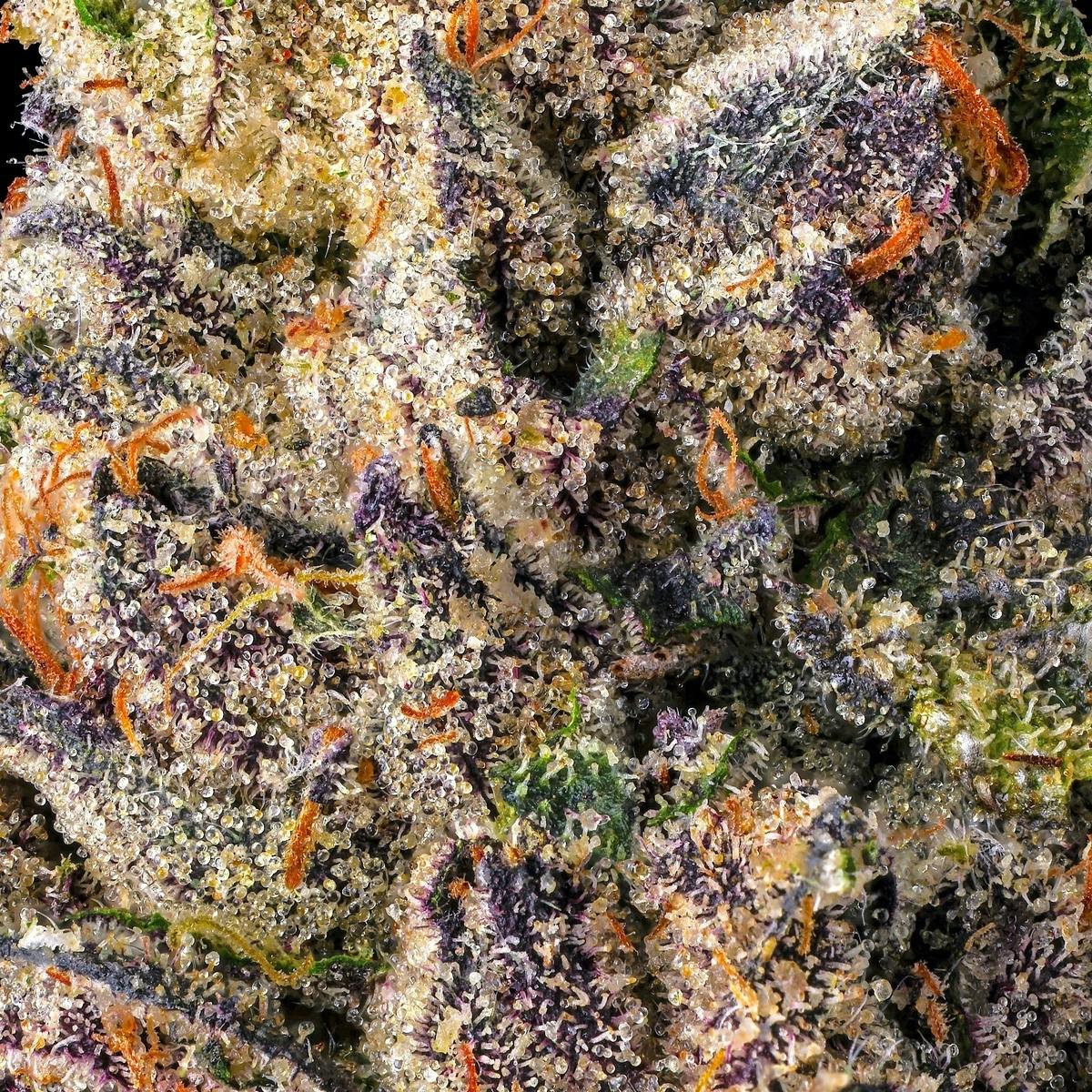 A vivid, candy-driven interpretation of the Prizm lineage, this cultivar highlights the playful side of Prizm’s genetic range. Lipsmackers brings its fruit pop sweetness, saturated purple hues, and playful aromatic appeal. Prizm sharpens the structure with increased resin, tighter architecture, and a more energetic terpene presence. The aroma leads with bright fruit candy and ripe berry notes, followed by a crisp citrus lift and a subtle undercurrent of gas. Breaking down the flower intensifies its sweetness and reveals the full character of the lineage. The flavor mirrors the nose with clarity. Sweet, juicy, and slightly creamy, balanced by a refined diesel whisper on the finish. The experience is uplifting, polished, and distinct within the Prizm family. The cultivar marks a vibrant and expressive extension of the new bloodline and a respectful nod to the work of Good Greens.