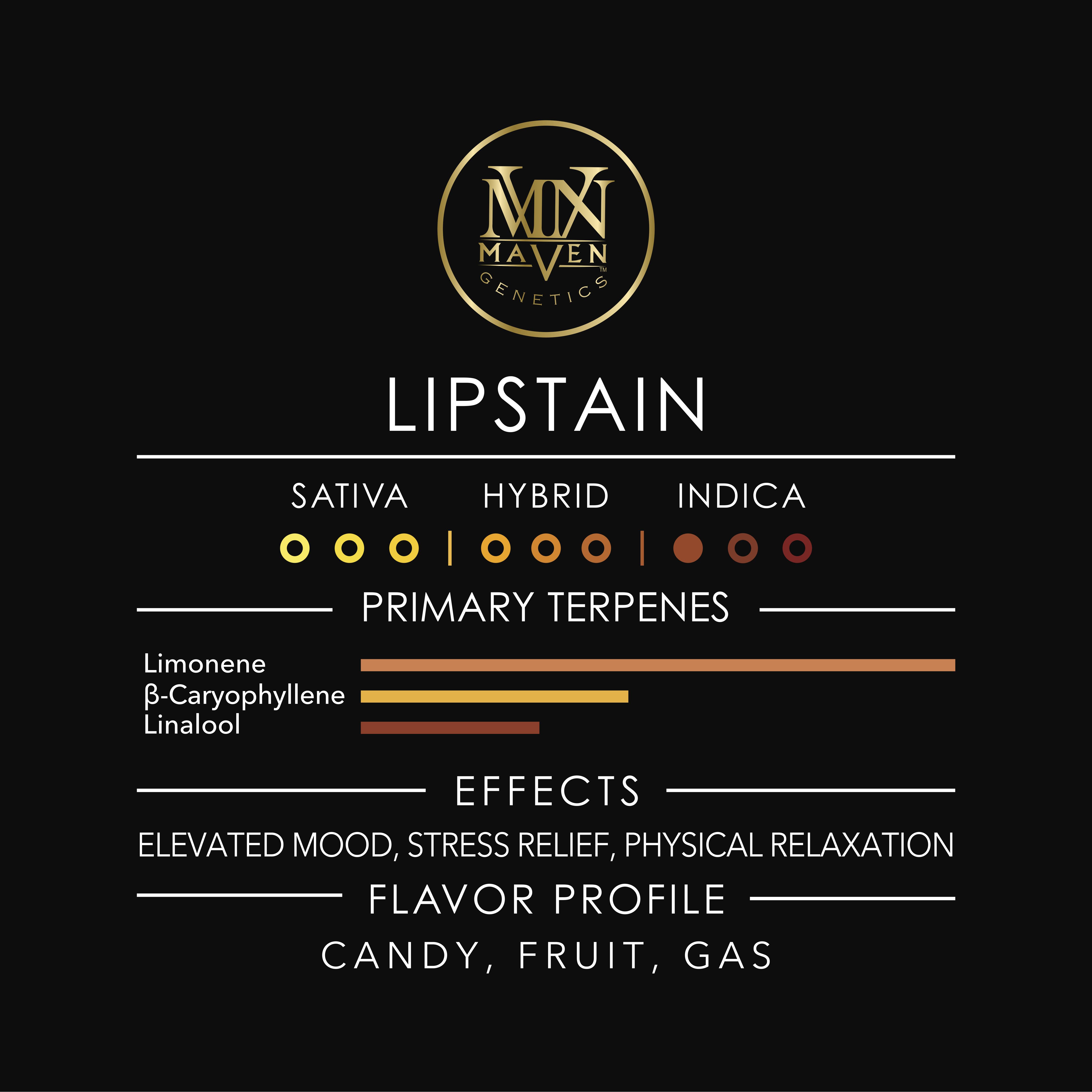 ![Maven Genetics - Lipstain [3.5g] - 1](https://weedmaps.com/images/photos/products/000/986/177/5126605_LIPSTAIN_REGULAR_SERIES_JAR_PROJECT_BLACK_SQUARE_2026__RETOUCH_.png?auto=format&fit=fill&fill=solid&fill-color=fff&w=540&h=540&blend-mode=darken&blend-color=%23F9F9F8)