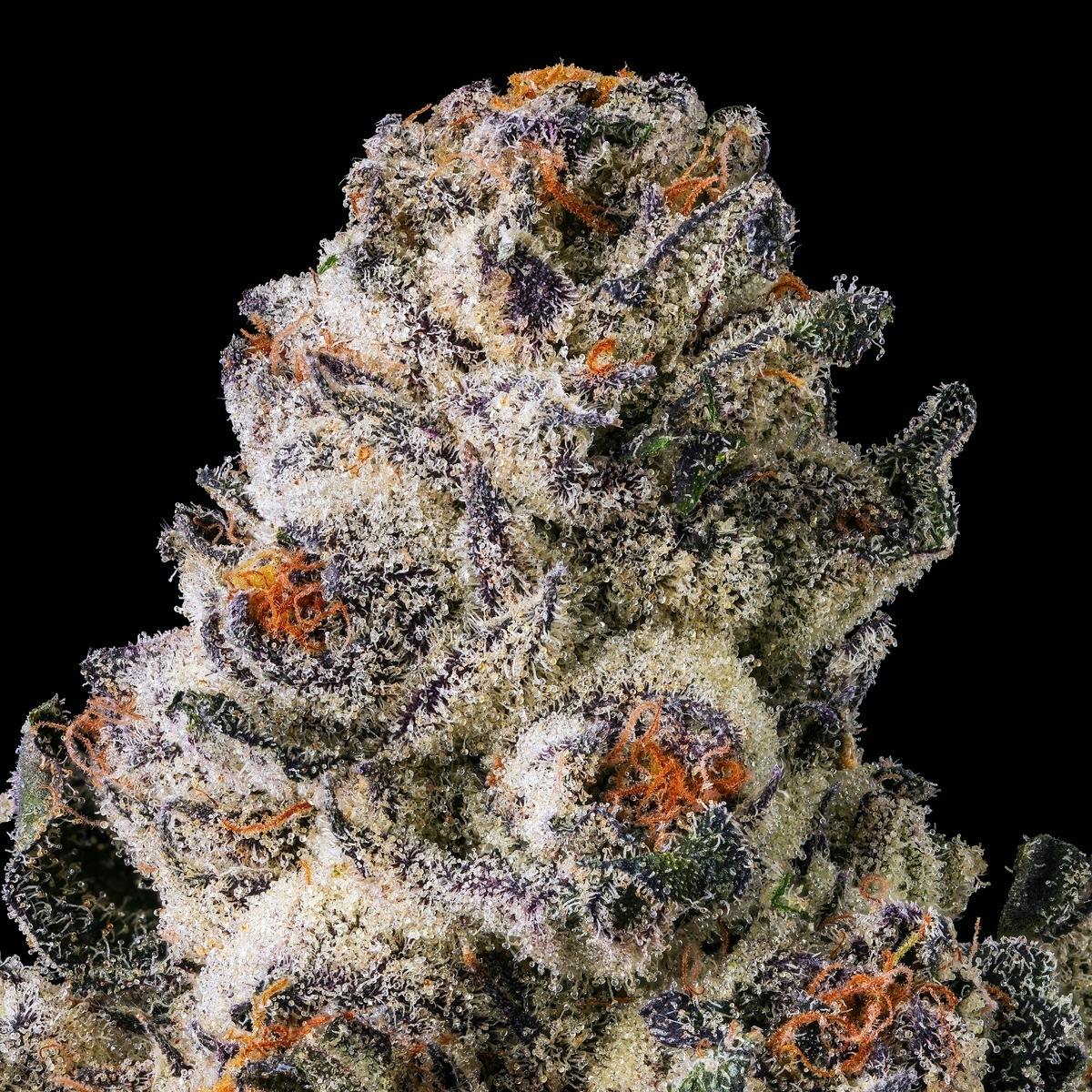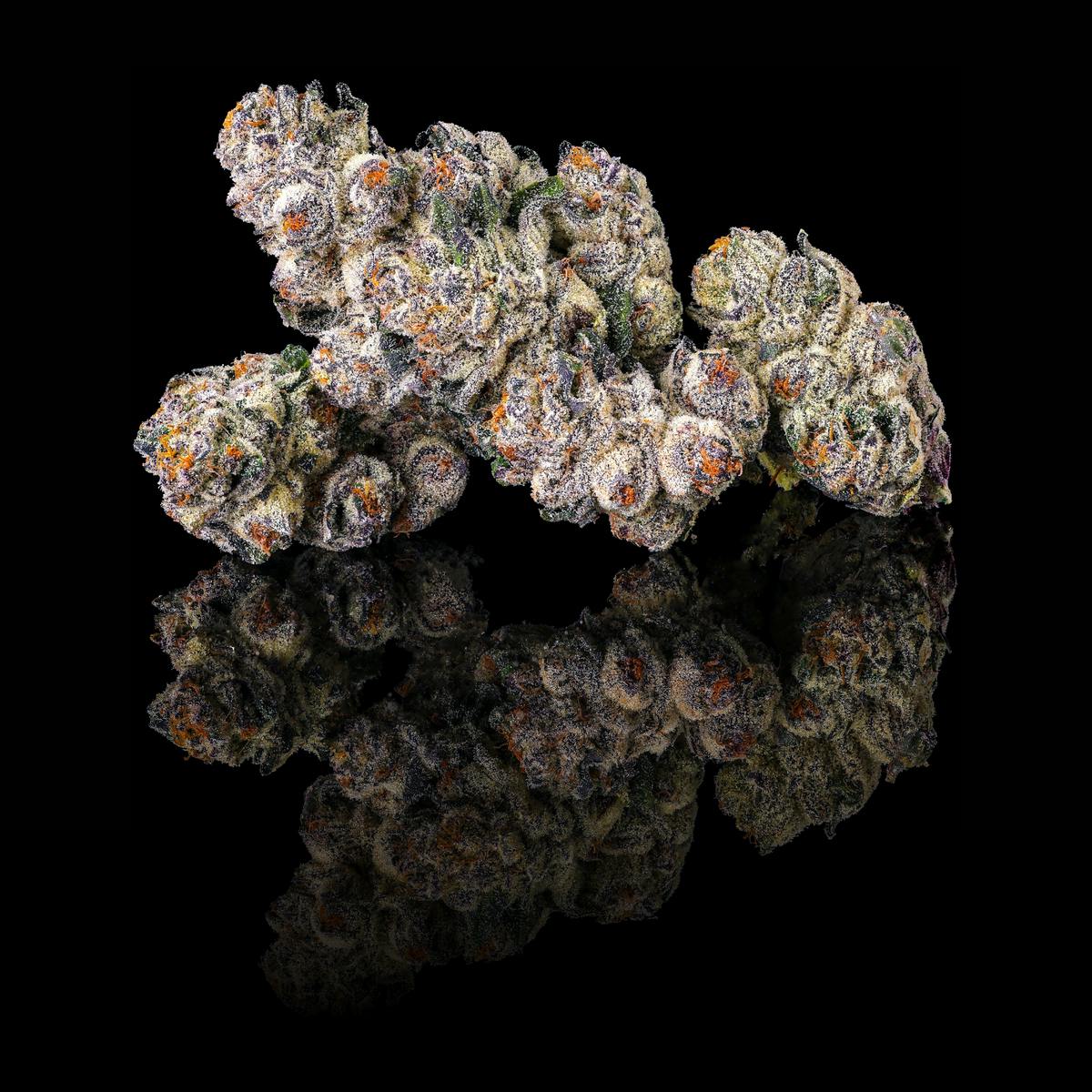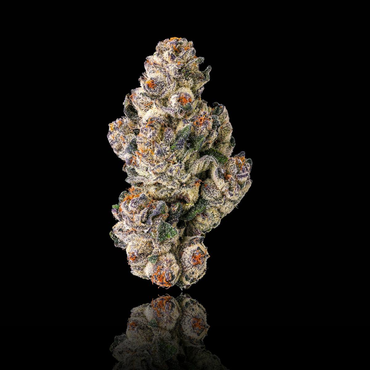 Black Lotus commands attention before it’s understood. Dark in expression yet composed in delivery, this indica-leaning cultivar—born of Black Diamond and Blue Lotus—merges deep OG intensity with a refined, cultivated elegance. A surge of pungent gas and dark, toasted warmth fills the air, setting expectations before a single note is tasted. The buds are tight and sculptural, saturated in deep violet, dusted with a muted frost that feels deliberate—sophisticated, composed, and inherently showstopping.The aromatics unfold with controlled intensity. Rich and velvety at first, the nose opens into bold gas and dark toast, edged with peppery spice and seasoned oak. On the palate, the smoke moves smooth and commanding—resonant and rich—carrying a warm, savory sweetness that exhales clean and lingers with restraint.The experience settles in quietly but decisively. Focus sharpens without strain, the body remains grounded, and sound takes on added dimension. Black Lotus is not indulgent; it is controlled, self-assured, and deeply composed—a cultivar defined by depth, balance, and calm intensity.