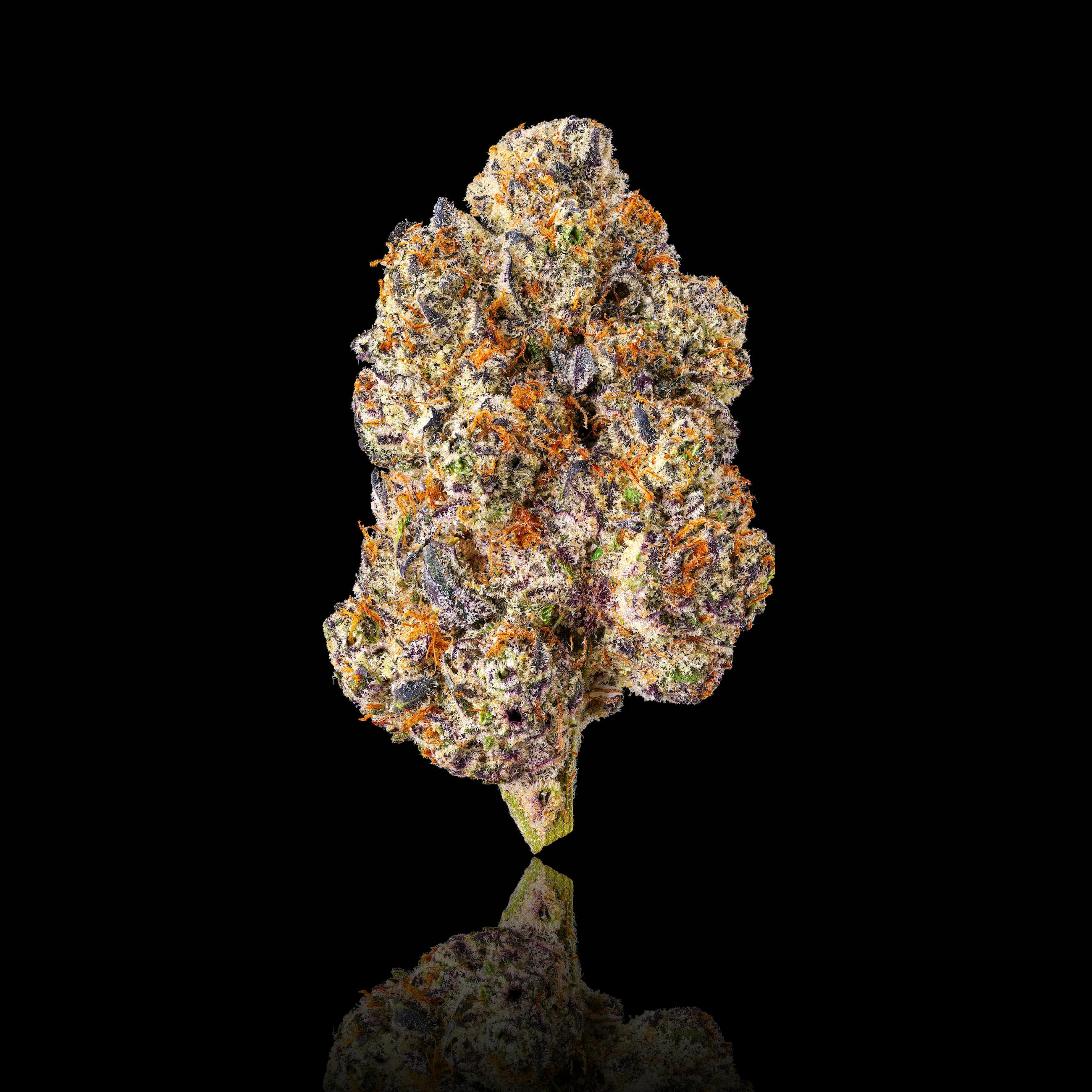 Parisian Kush carries itself with quiet elegance, a cultivar shaped by refinement rather than excess. Its buds rise tall and sculptural, saturated in deep violet and inky purple tones, their structure reading composed and deliberate beneath an even lacquer of frost. The aroma opens with a soft wash of cream and restrained sweetness, layered with a delicate floral-purple nuance that deepens as the flower is handled. As it settles, a low, kush-leaning gas begins to surface—warm and resinous—with just a trace of earth beneath it, adding depth without weight. On the palate, the smoke remains smooth and unforced, lightly sweet through the inhale, resolving with a gentle, fuel-kissed finish that feels grounded and composed rather than sharp. The experience unfolds into a light, hazy clarity—relaxed, pleasant, and unintrusive—designed for ease rather than intensity. Shaped by the refinement of FKAFL (F. Laundry) and the quiet depth of Blue Lotus #13, Parisian Kush is a polished Hybrid built for repeat enjoyment, where visual beauty and