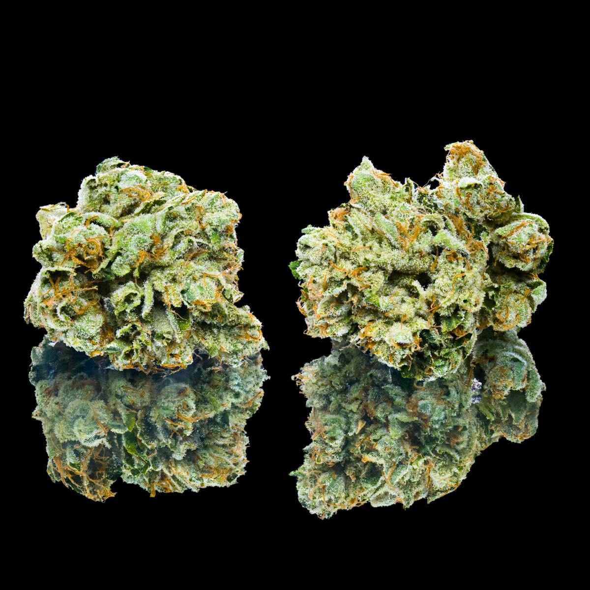 The smell of Saturn OG is strong, combining pepper, lemon, pine, and diesel. It tastes like earth and mint with just a light hint of diesel. This strain has the classic look of OG Kush thanks to its dense, dark green buds with orange-red hairs and tons of milky amber crystal trichomes. It has a sky-high amount of THC, over 30% on average.