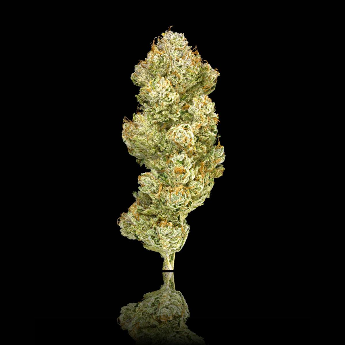 This OG is an out-of-this-world Hybrid of unknown origins, thought to be a descendant of the classic OG Kush. The dense, sticky, dark green buds are covered with long, curly orange Pistils, star-studded in an icy sheet of Trichomes. This celestial strain has a supernatural aroma and flavor profile, emitting pungent notes of diesel and citrus with hints of spicy pepper upon breaking apart. The initial energetic head rush launches your mind into a distant, spacey haze while the body slowly drifts into a soothing, sedative heaviness resembling that of the gas giant itself. This planetary OG provides a balance between mental and physical effects, beneficial for medical and recreational consumers alike, improving concentration and mood, or for those suffering from chronic pain, stress, muscle spasms, insomnia and more.