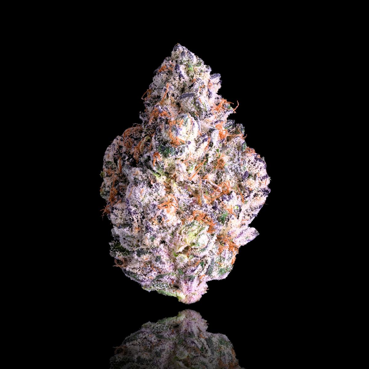 Behold the timeless Shangri-La. This harmonious fusion of Opal and Paradiso #11 displays mountainous buds in captivating tones of lush forest green and royal violet, set against a backdrop of pure white snow that blankets their majestic peaks, resembling a scene of a mystical utopia. Revel in a sensory voyage of delicate floral aromas and luscious fruit enhanced by tones of earthiness and diesel while a symphony of tart, candied notes linger on the palate. This Indica-dominant Hybrid rivals heaven on earth for those seeking peace and tranquility.