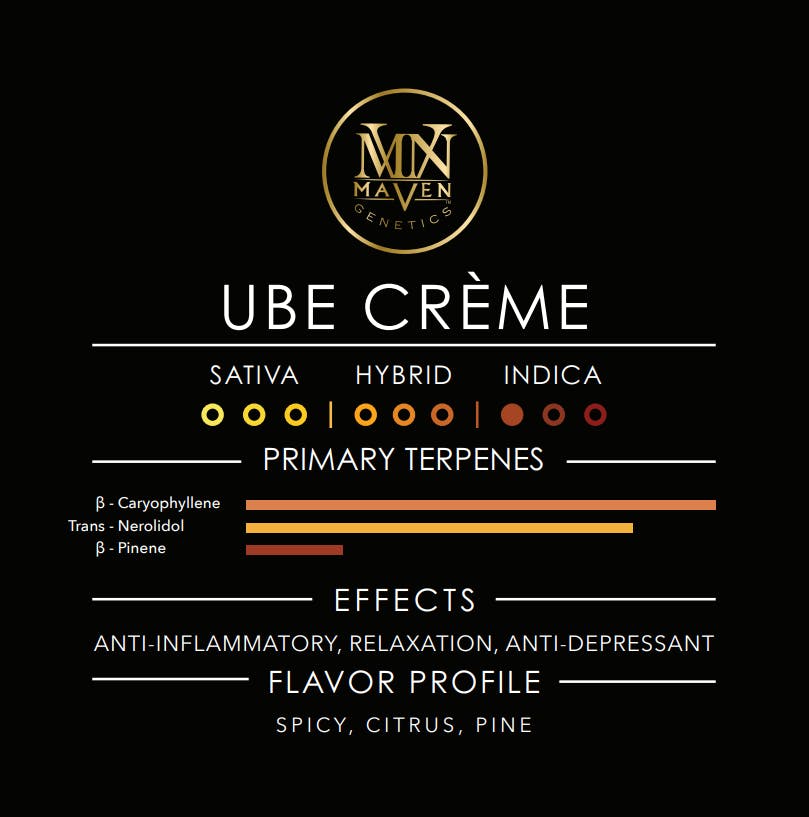 ![Maven Genetics - Ube Crème Pre-Roll [1g] - 1](https://weedmaps.com/images/photos/products/000/509/767/2821587_INDICA_1G_PRE-ROLL_REDUX_BLACK_2024_copy.png?auto=format&fit=fill&fill=solid&fill-color=fff&w=540&h=540&blend-mode=darken&blend-color=%23F9F9F8)