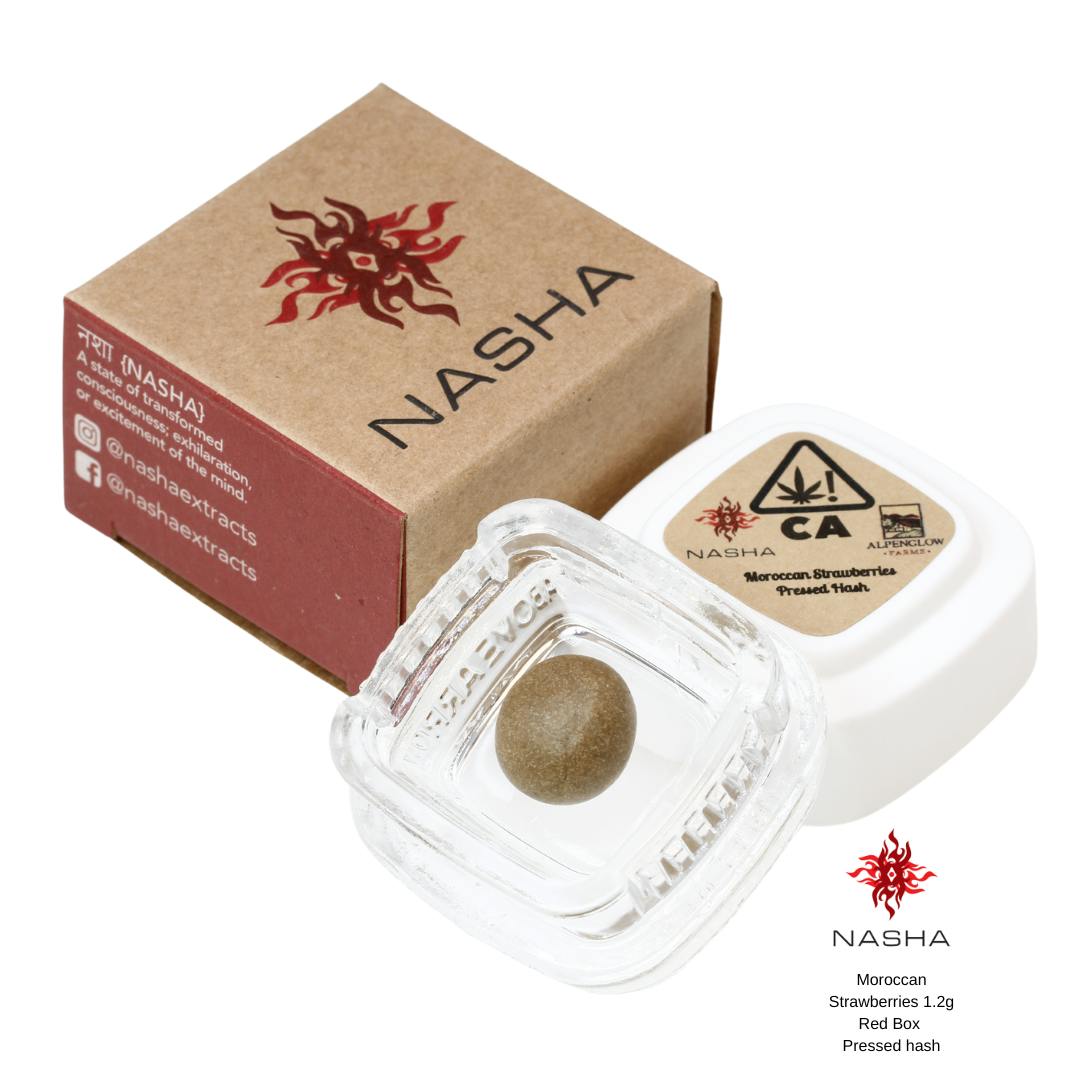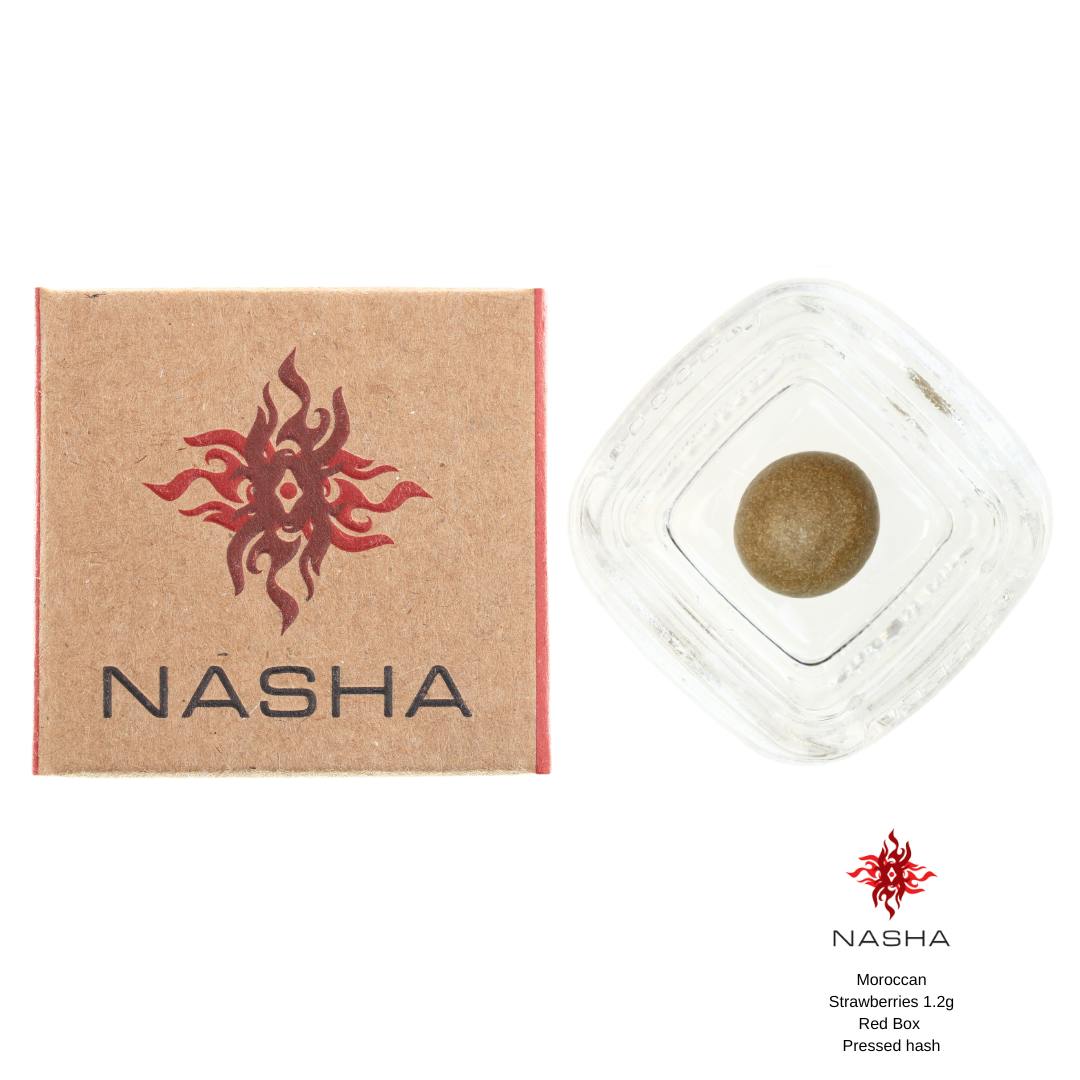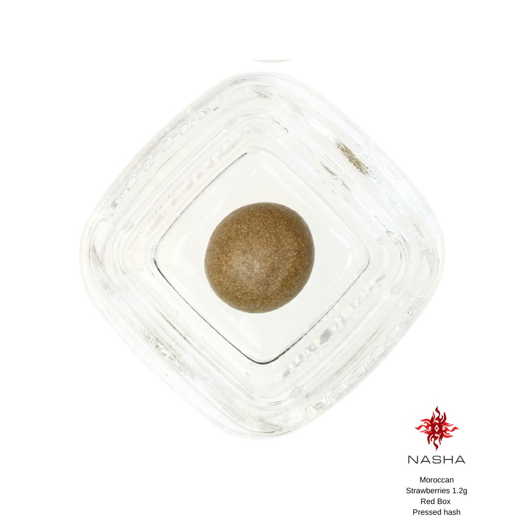 Nasha’s Red Label Hash is a 1.2g hand-rolled sphere of pressed hash that has a high ratio of oil to plant material, yielding a smooth,