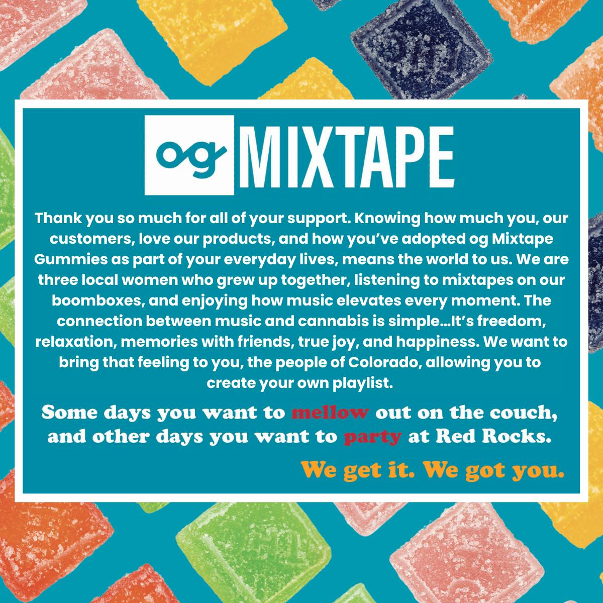 Knowing how much you, our customers, love our products, and how you’ve adopted og Mixtape Gummies as part of your everyday lives, means the world to us.