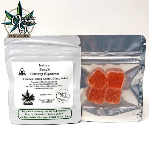 100mg Indica Peach Gummy Squares