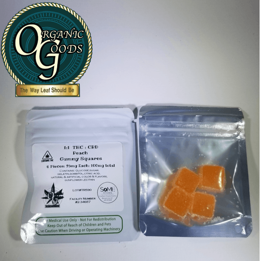 100mg 1:1 THC : CBD Peach Gummy Squares