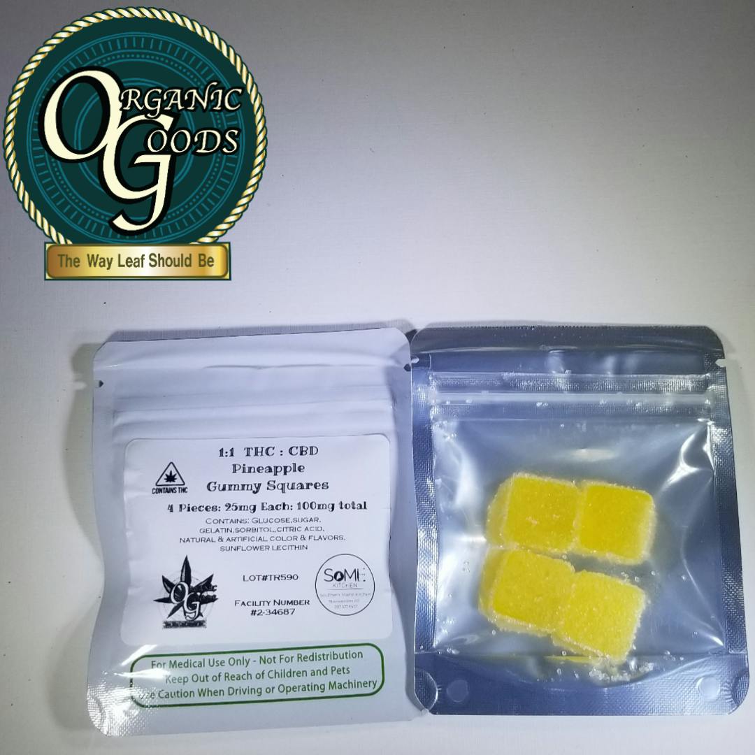 100mg 1:1 THC : CBD Pineapple Gummy Squares