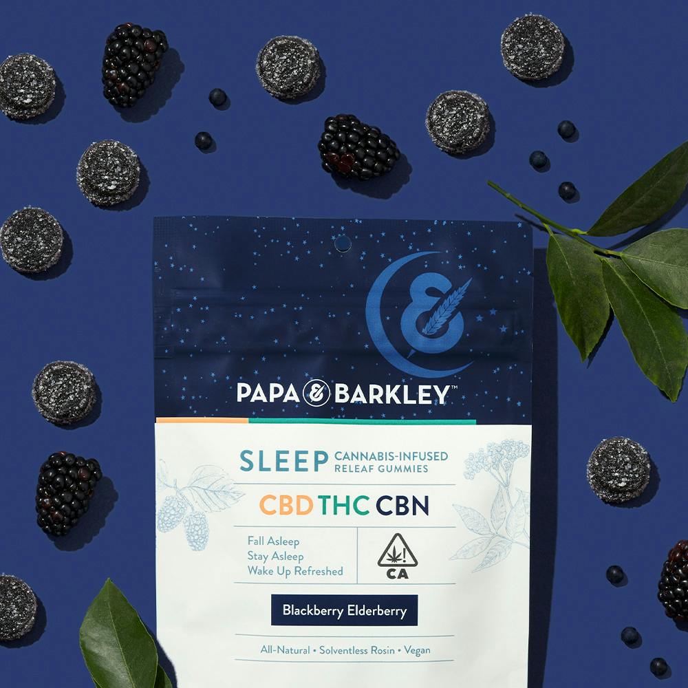 These vegan Sleep Releaf gummies are made with Papa & Barkleyโs signature, whole-plant, solventless CBD and CBN derived from the Cannabis plant to promote drowsiness, fall asleep faster, stay asleep longer, and wake up refreshed. Crafted with great care, our confectionery team infuses each gummy with craveable blackberry elderberry flavoring for a perfect bedtime treat.