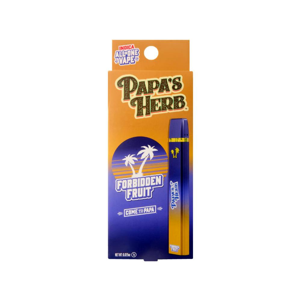 Experience Papa’s Herb Forbidden Fruit AIO Vape, an indica all-in-one vape with rich tropical fruit flavor layered with sweet and musky notes. This smooth, convenient device is commonly associated with relaxing effects, making it suitable for evening or anytime use. Effects may vary. Intended for adult use only.