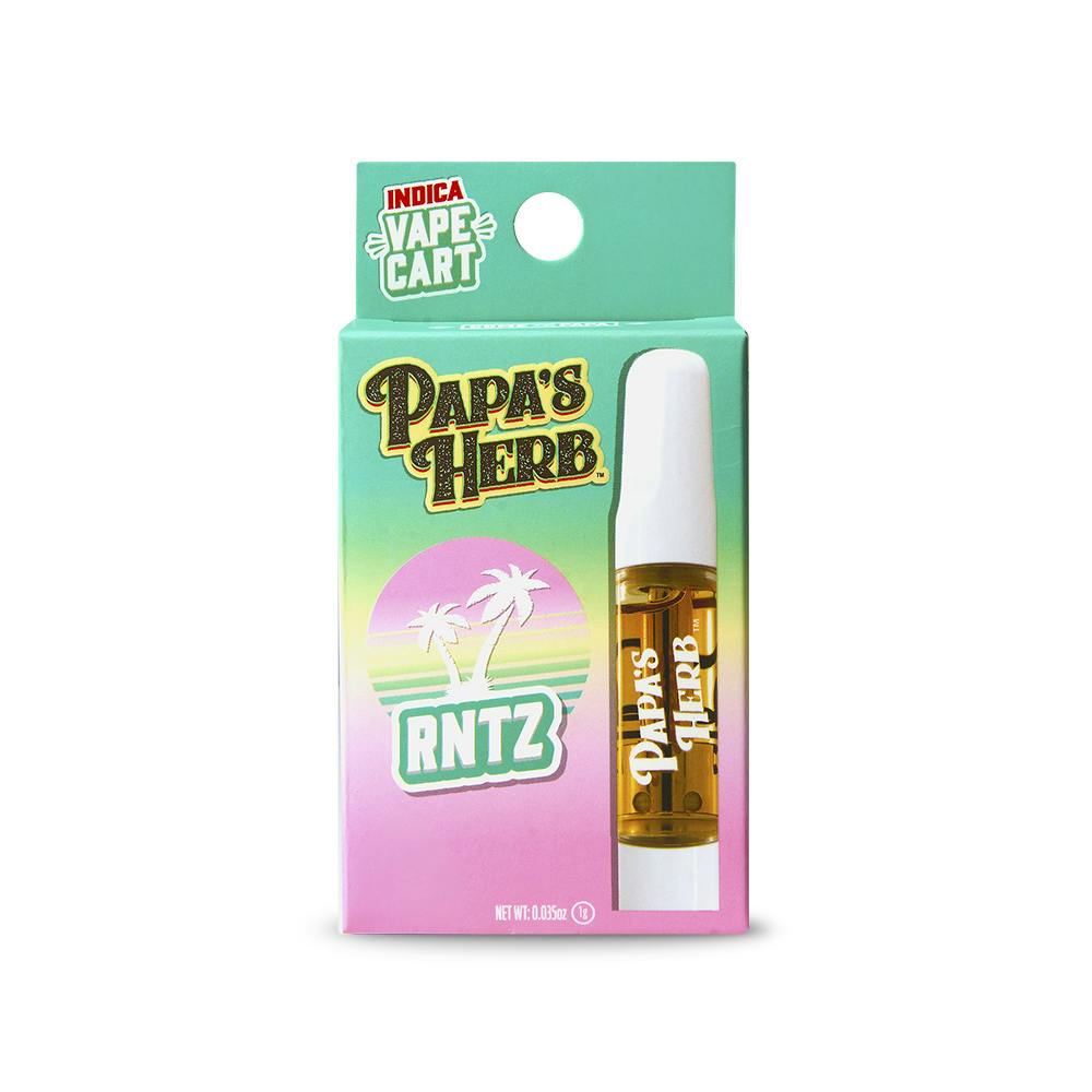 Experience Papa’s Herb RNTZ Cartridge, an indica vape cartridge with rich, sweet and creamy flavor and a smooth inhale. This flavorful strain is commonly associated with relaxing effects, making it suitable for evening or anytime use. Effects may vary. Intended for adult use only.