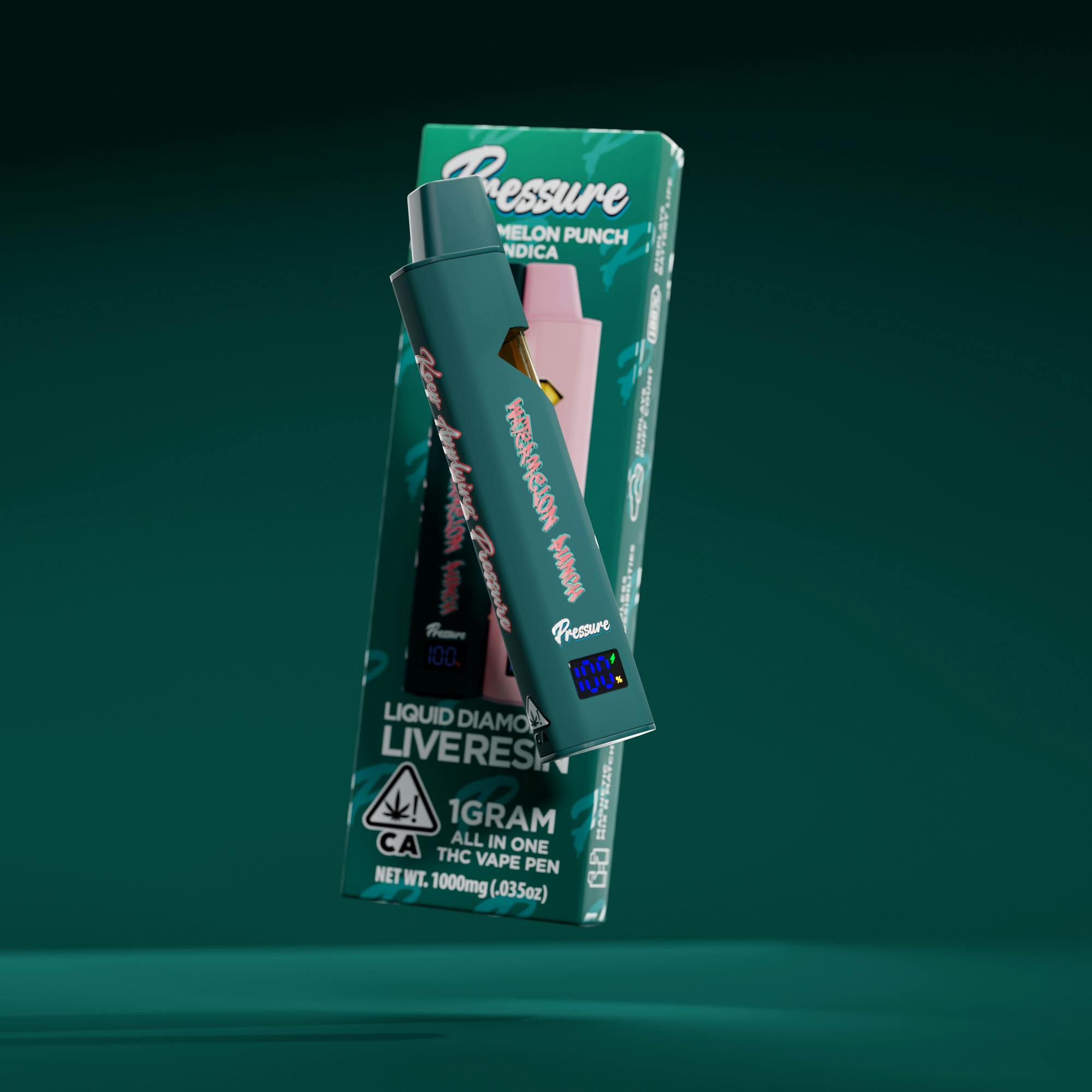 Premium potency meets innovative design. Each Pressure device comes loaded with Live Resin Liquid Diamonds a fusion of terpene rich live resin and liquified THCa crystals for dab like intensity and rich strain specific flavor in every pull.
