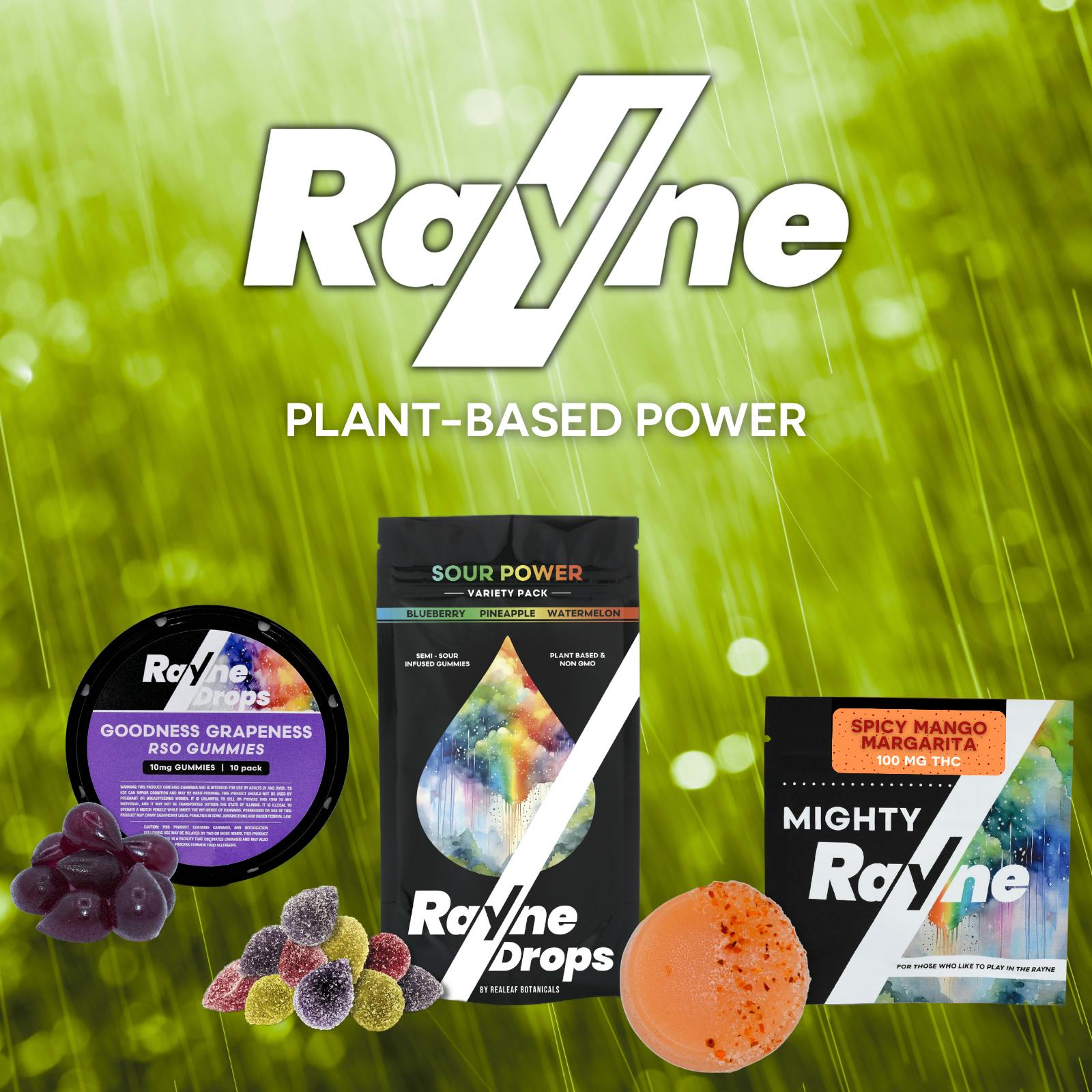 Step into the storm with Mighty Rayne Gummies, the bold, macro-dose edibles designed for those who embrace the moment and play in the RAYNE.