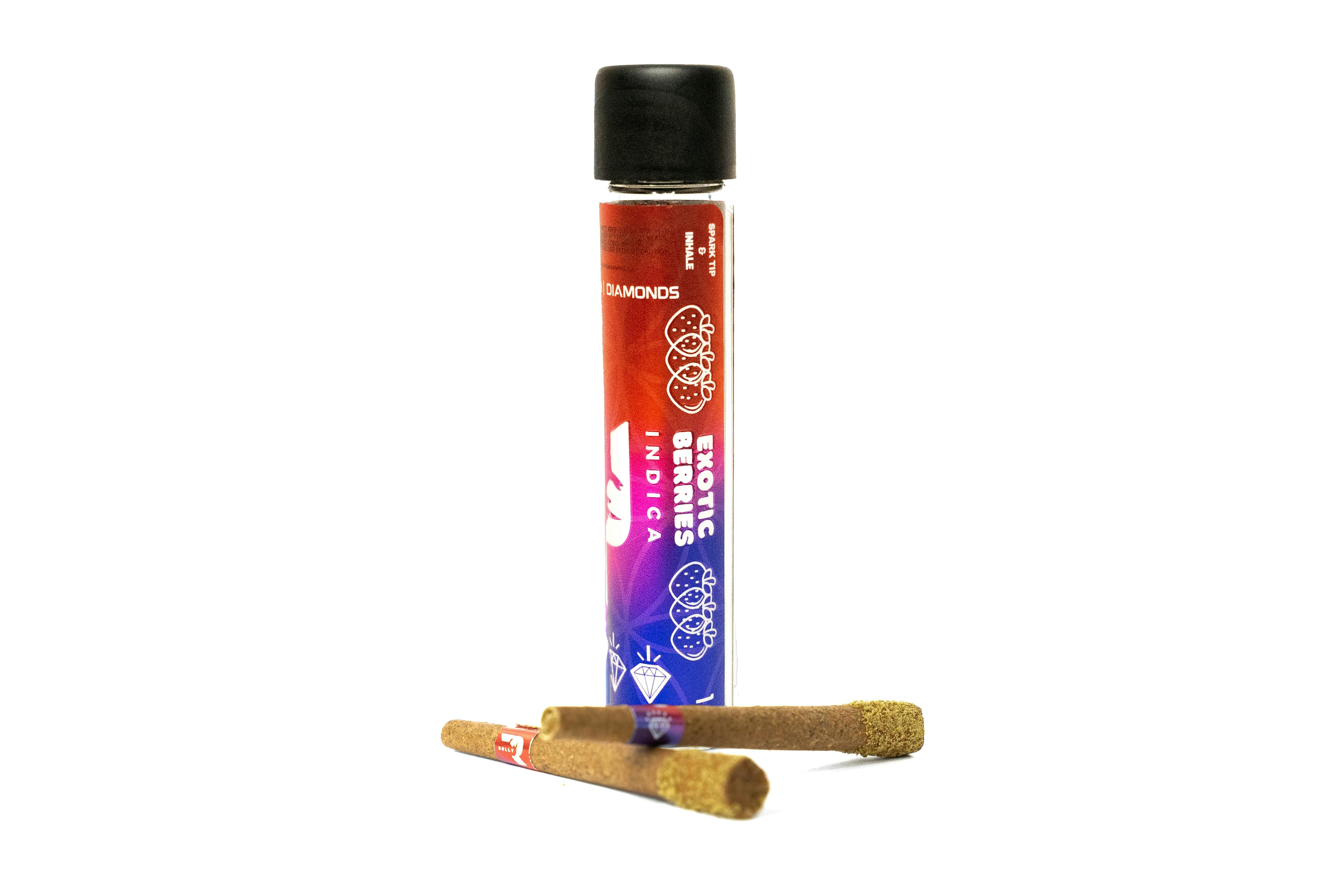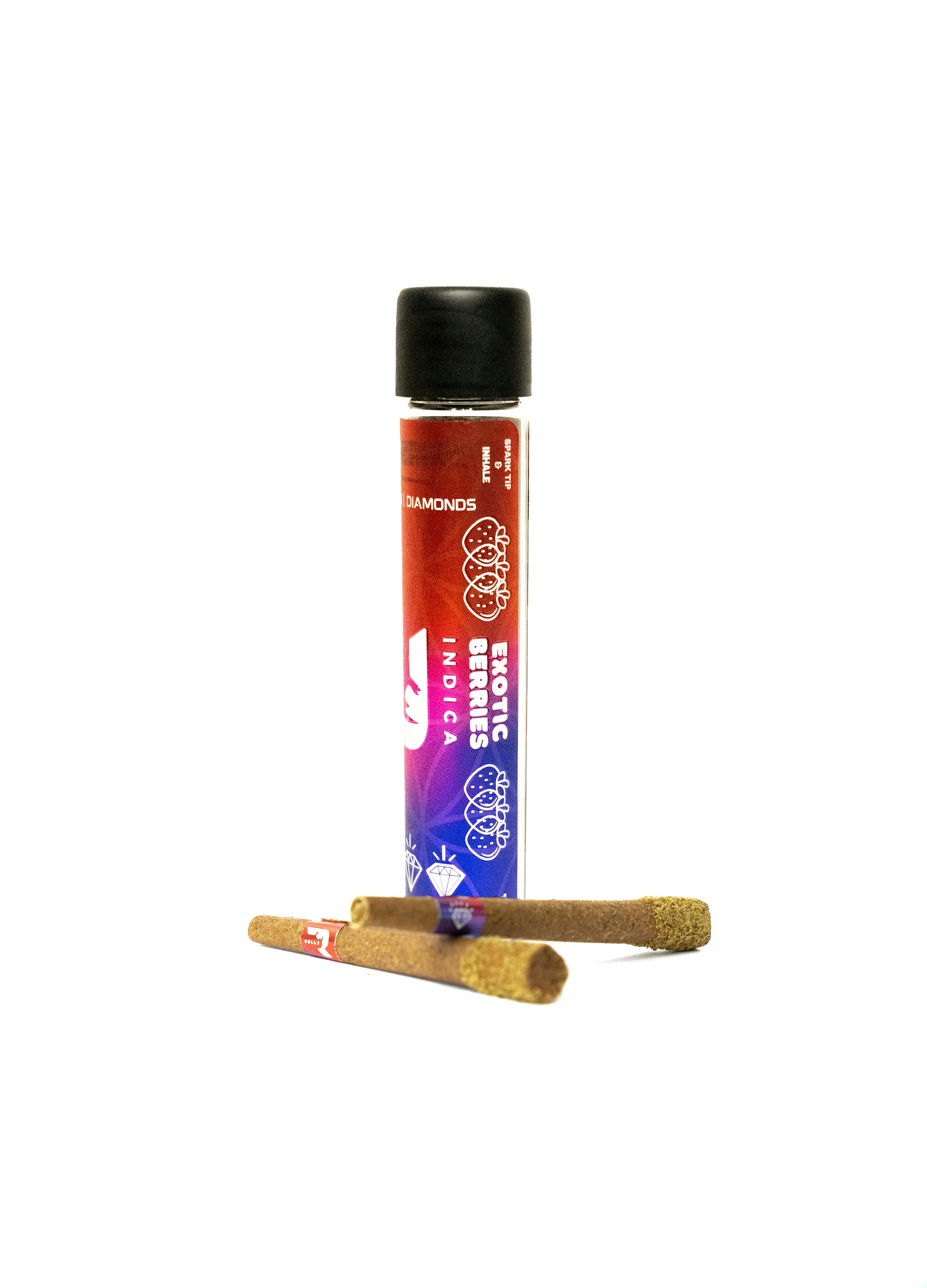 ROLLY DIAMOND INFUSED BLUNTS. EXOTIC BERRIES IS A FULL INDICA, AND WILL HITS LIKE A RHINO! TASTY AND LONG LASTING BURN. CRUSHED DIAMONDS ARE USED TO MAKE THE PERFECT HEAVY INDICA BLEND.