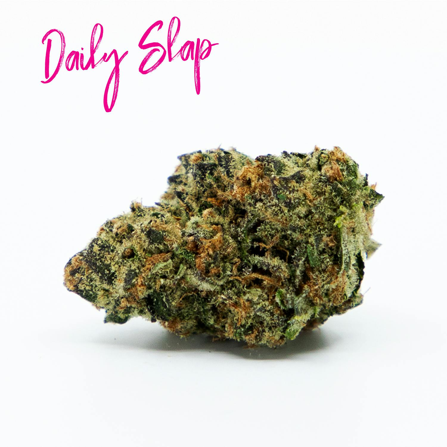 Soft cheese and zesty funk, searing skunk, notes of garlic and gas, sweet sugary citrus; Daily Slap is bright and enlivening, an open-hand slap to your senses. Comparable to the classic OG profile, Daily Slap is complex and holds many twists and turns; feel the sensation drift back and forth between sweet and spiced, and the flavor oscillates between cheese and fruit and skunk. Hybrid, the stone leans slightly sativa; awaken the mind and dazzle the senses with Daily Slap. Smoke it before you shadowbox, or use it to get yourself psyched up for your upcoming jiu-jitsu class.