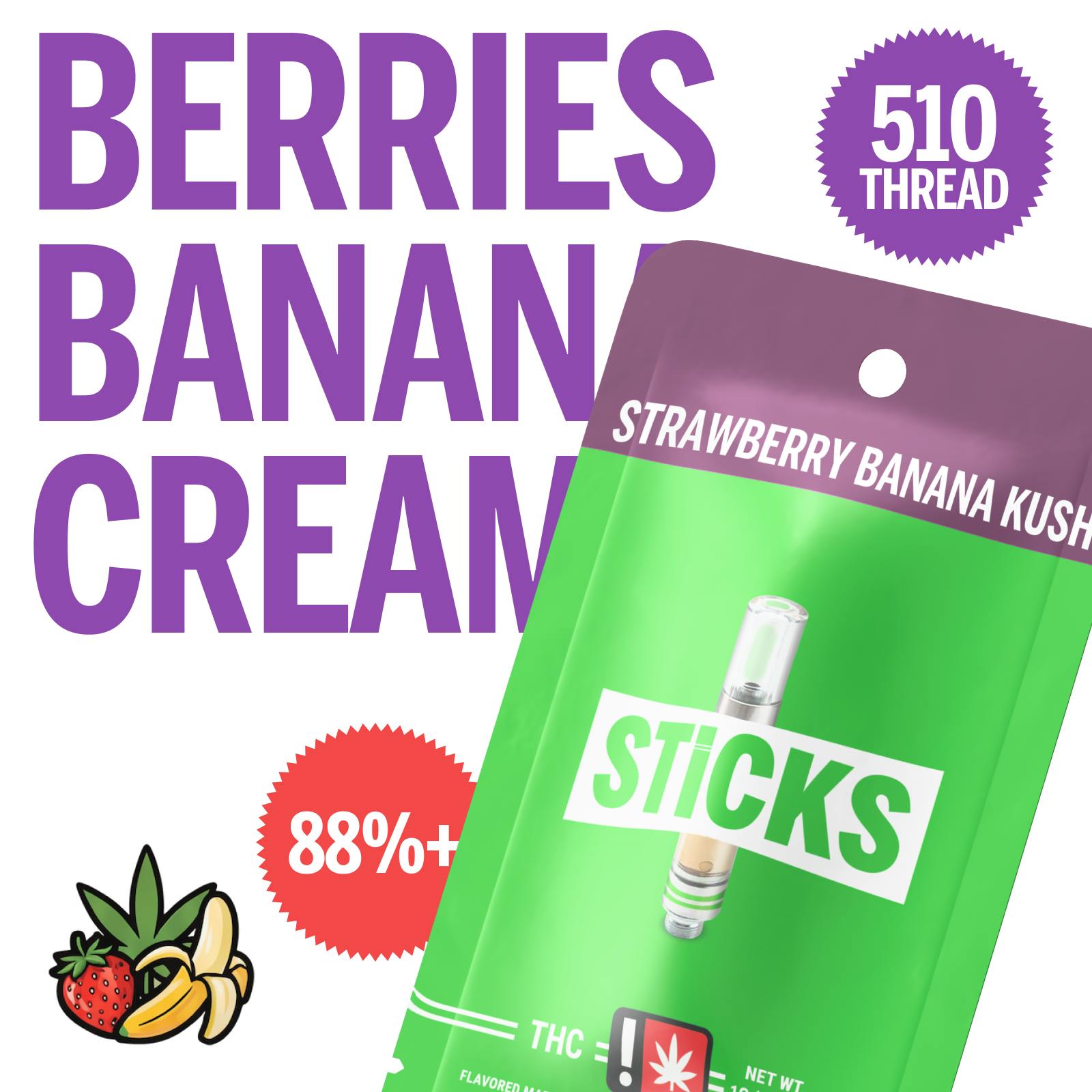 STICKS Strawberry Banana Kush Indica Cartridge [1G]