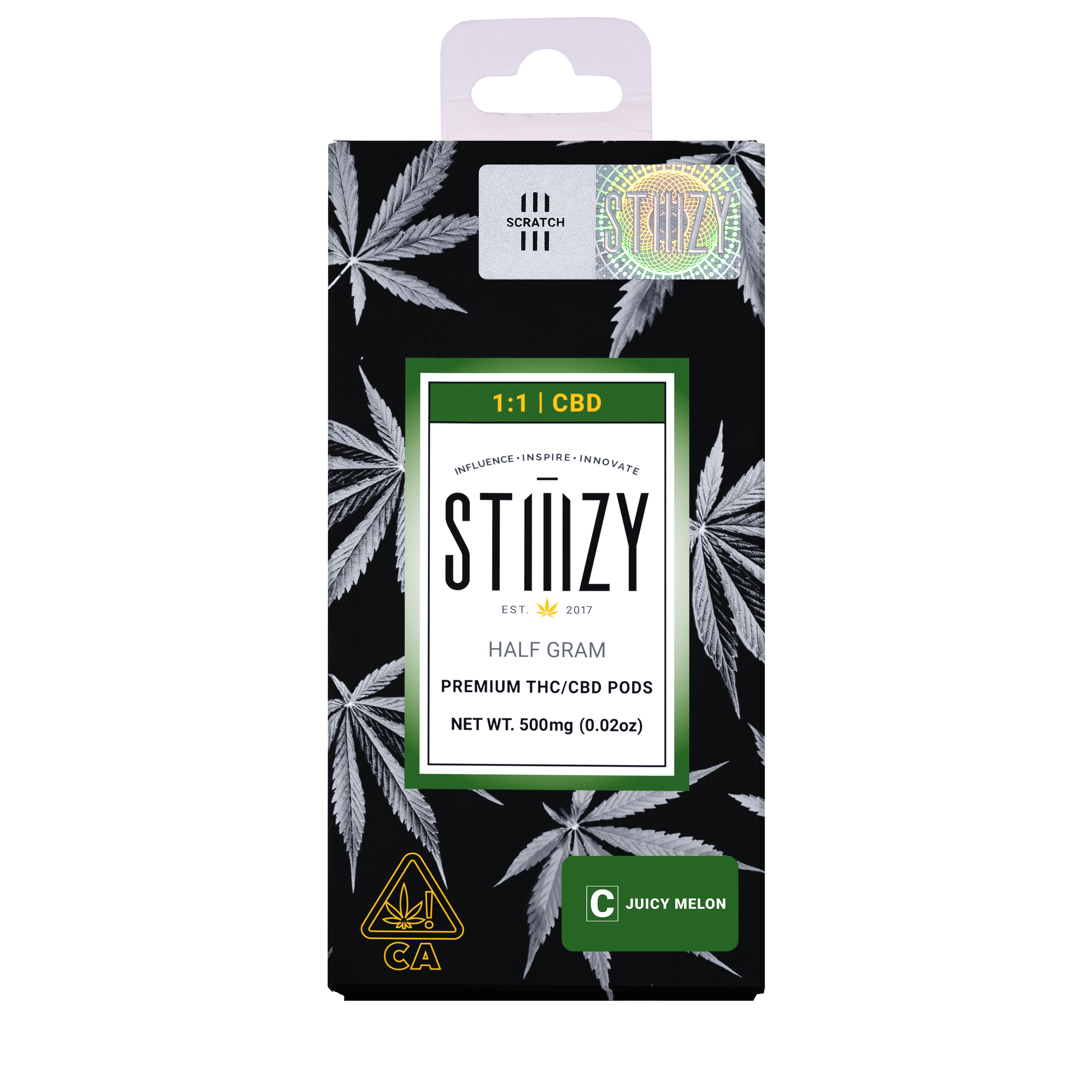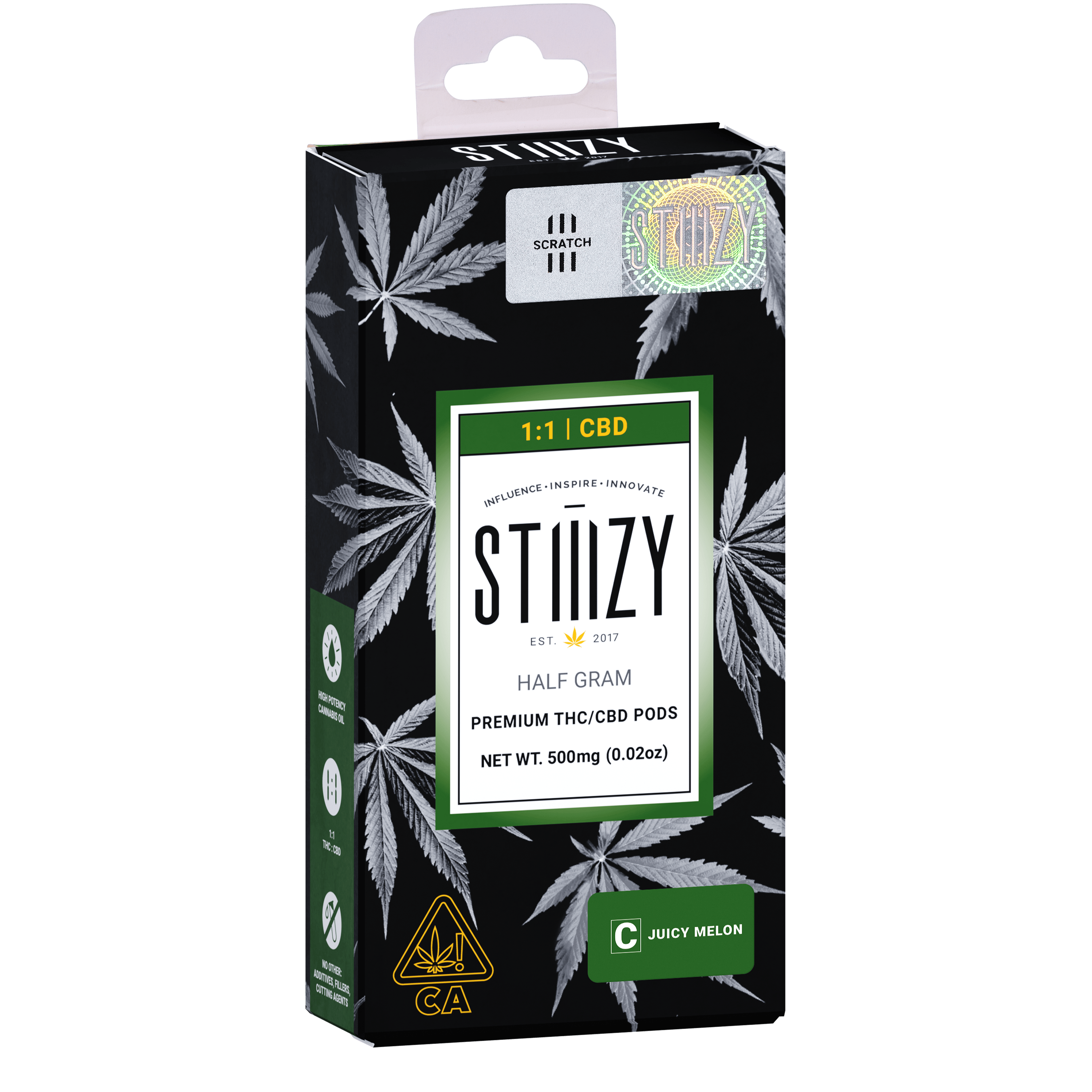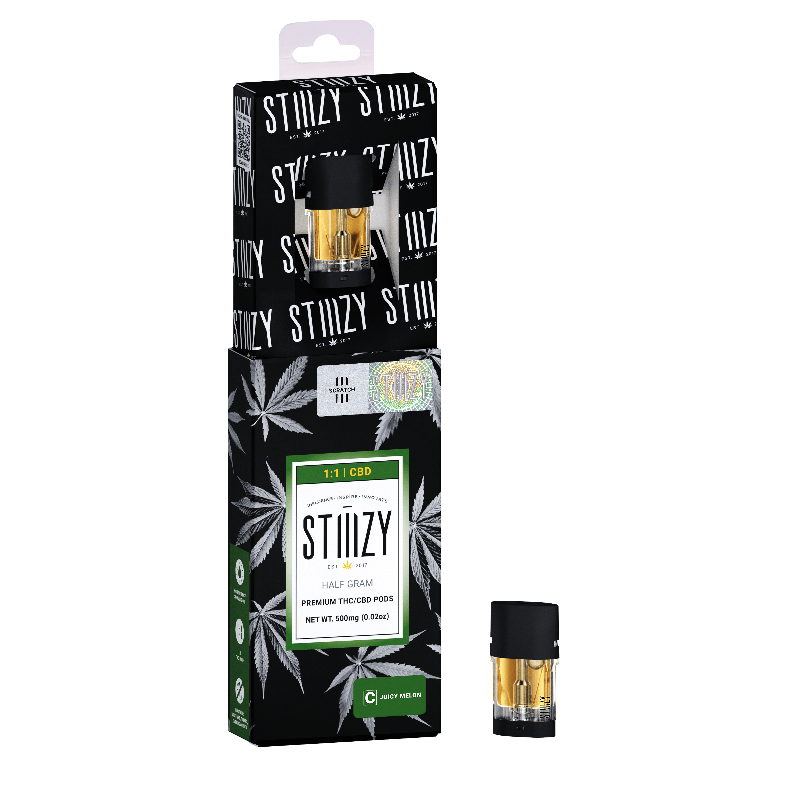 DESCRIPTION: A 1:1 pod that offers an equal ratio of CBD and THC infused with fresh Juicy Melon flavor.