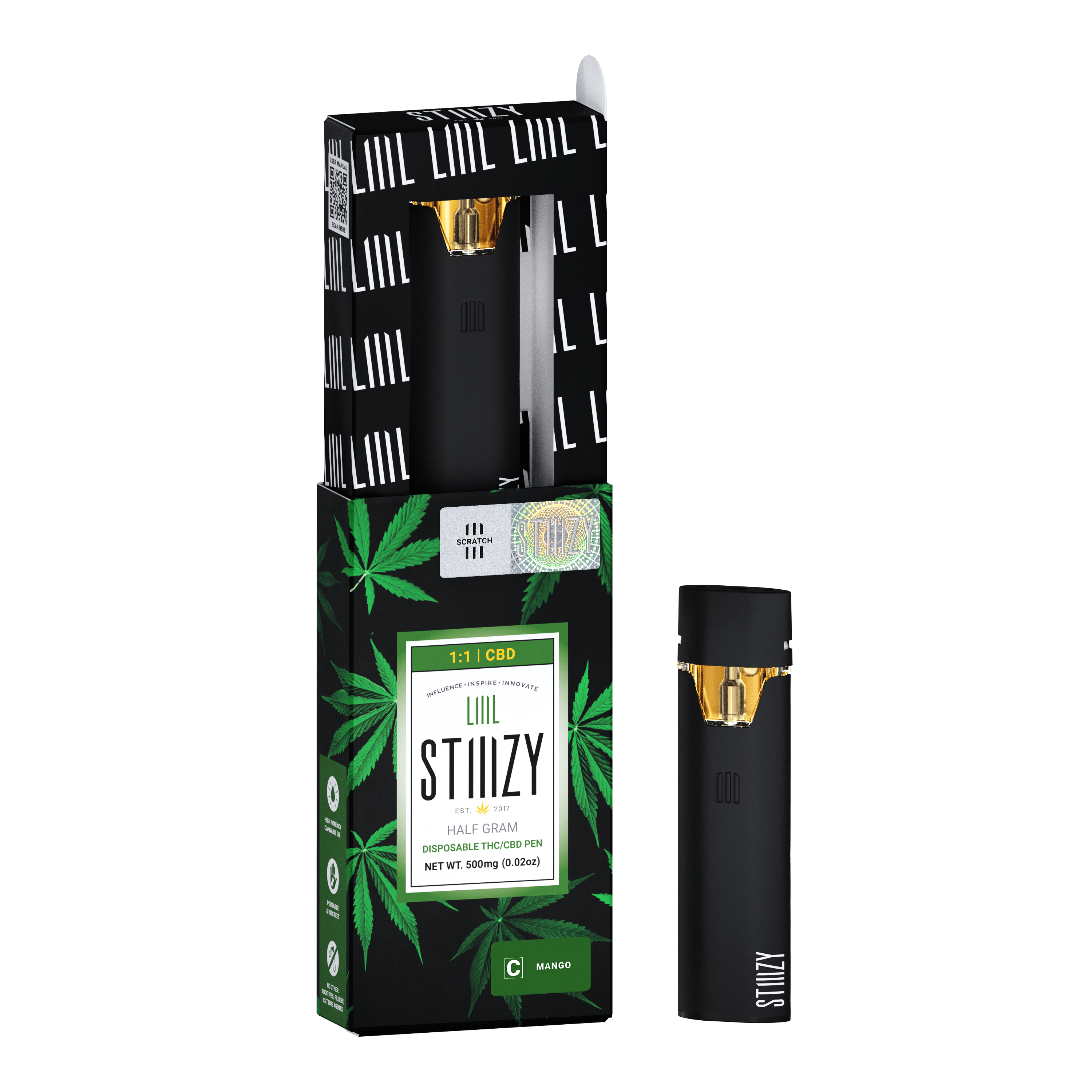 DESCRIPTION: A 1:1 pod that offers an equal ratio of CBD and THC infused with fresh mango flavor.