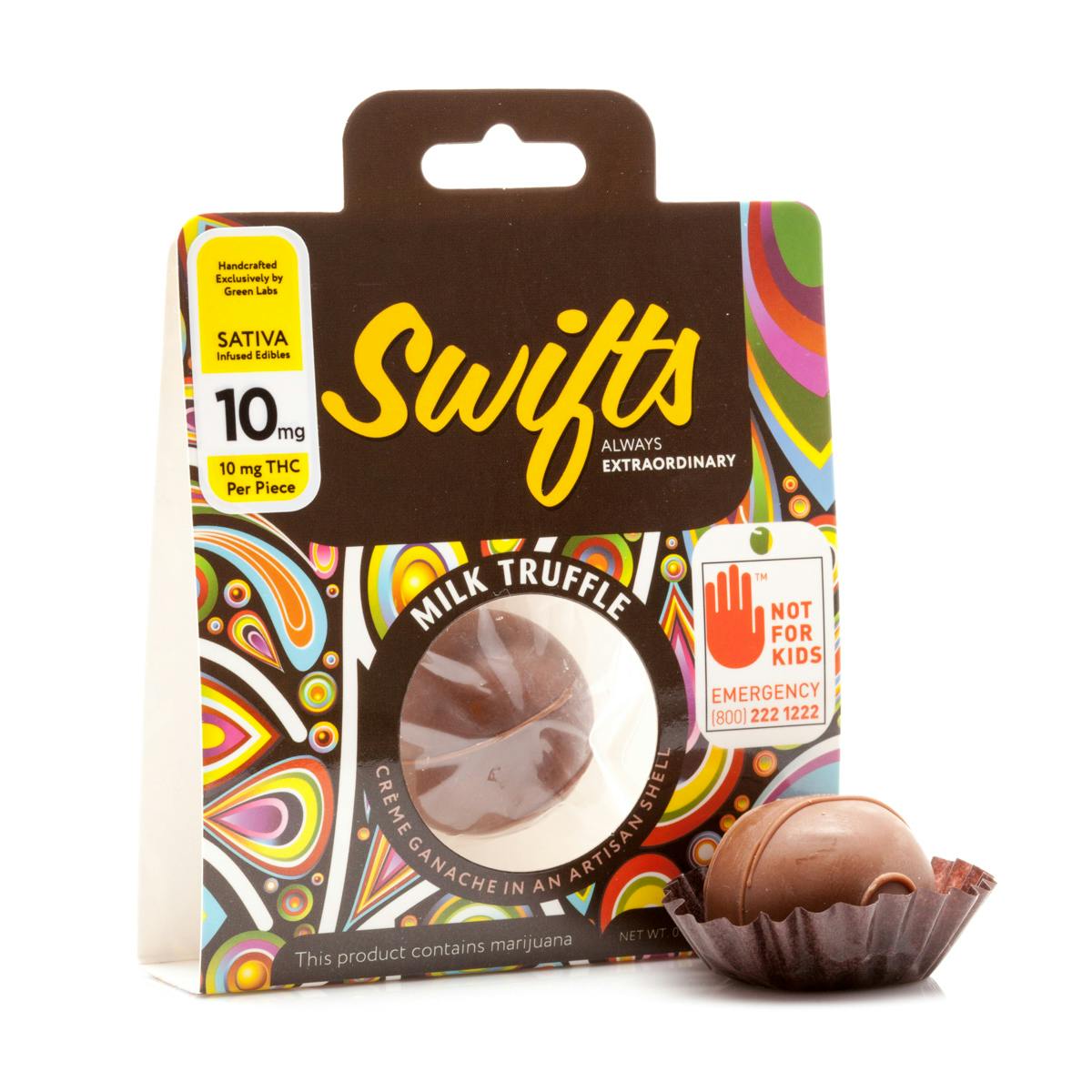 Crème ganache dipped in milk chocolate and topped with drizzle, Swifts Milk Truffles delivers a decadent high. Breakthrough the first layer of Milk Truffles’ chocolate shell to reveal a creamy and rich whipped ganache blended with cannabis. This THC infused chocolaty treat will capture your senses and free your mind. Individually wrapped 10mg.