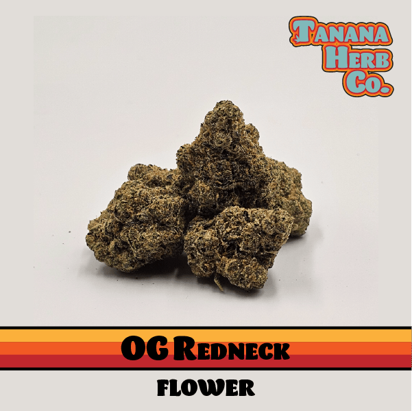 OG Redneck, a potent 90/10 Indica, delights with notes of sour thanks to its rich Myrcene content, as well as hints of sweet herbs and spices. OG Redneck is a cross of Ghost OG x Redneck Wedding. This strain delivers a heavy, deeply relaxing high, purported to provide effective pain relief and combatting insomnia. Embrace the tranquility and let OG Redneck ease your worries.