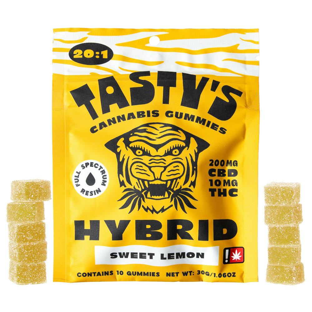 ![Tasty's - [10pk] 20:1 Sweet Lemon - Hybrid - 1](https://weedmaps.com/images/photos/products/002/267/199/5284202_TST_BarbSystem_Gummies_SweetLemon_Restore.png?auto=format&fit=fill&fill=solid&fill-color=fff&w=540&h=540&blend-mode=darken&blend-color=%23F9F9F8)