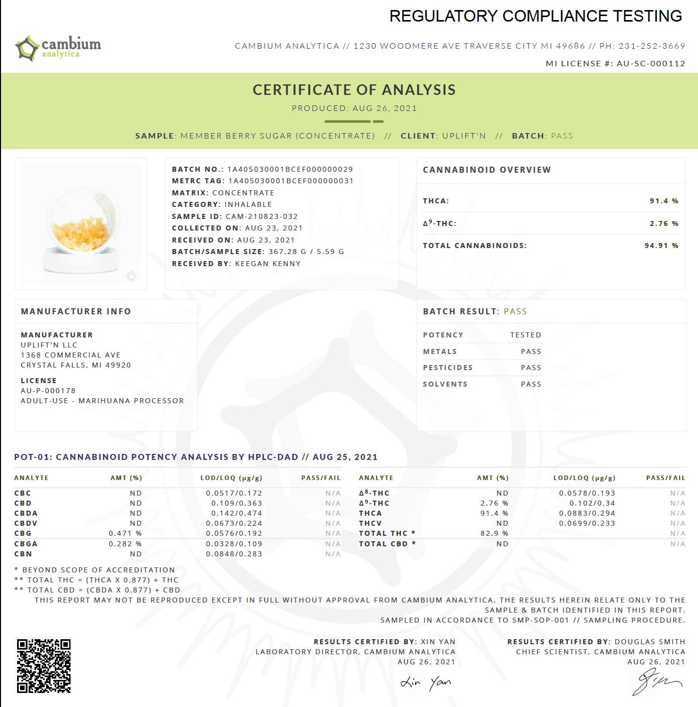 Member Berry - Full Spectrum Sugar - 94.91% Purity! High THCa