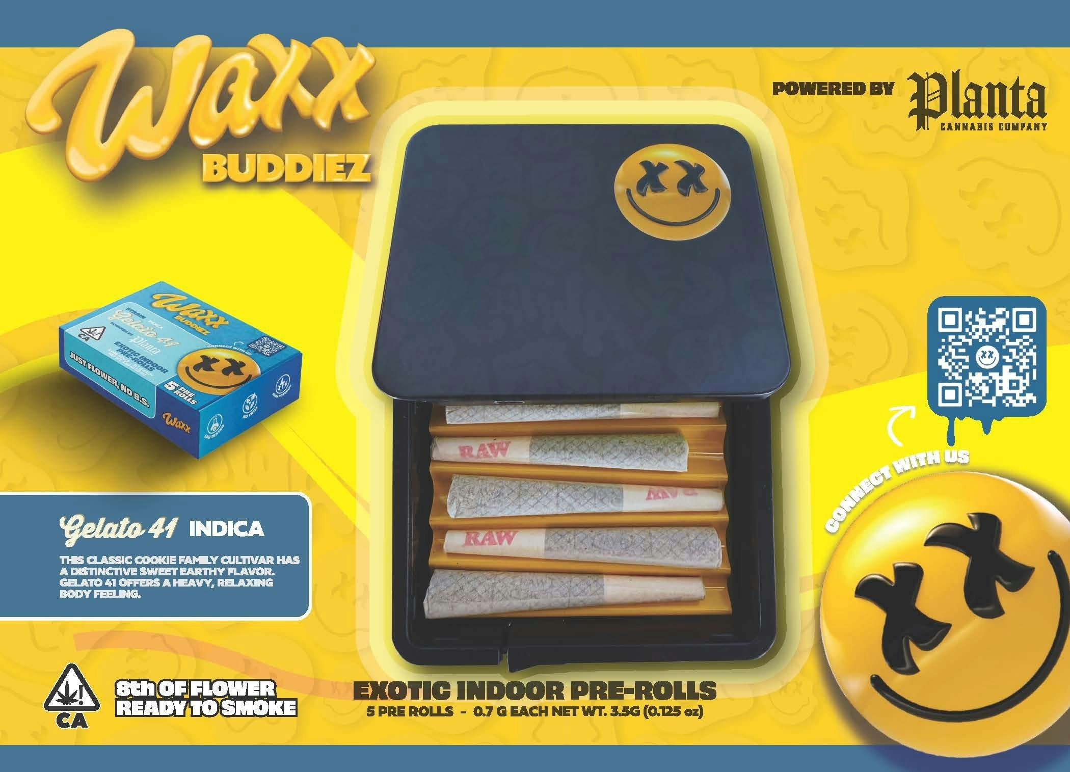 8TH OF FLOWER READY TO SMOKE - Gelato 41 Waxx Buddiez 3.5G Pre-Rolls